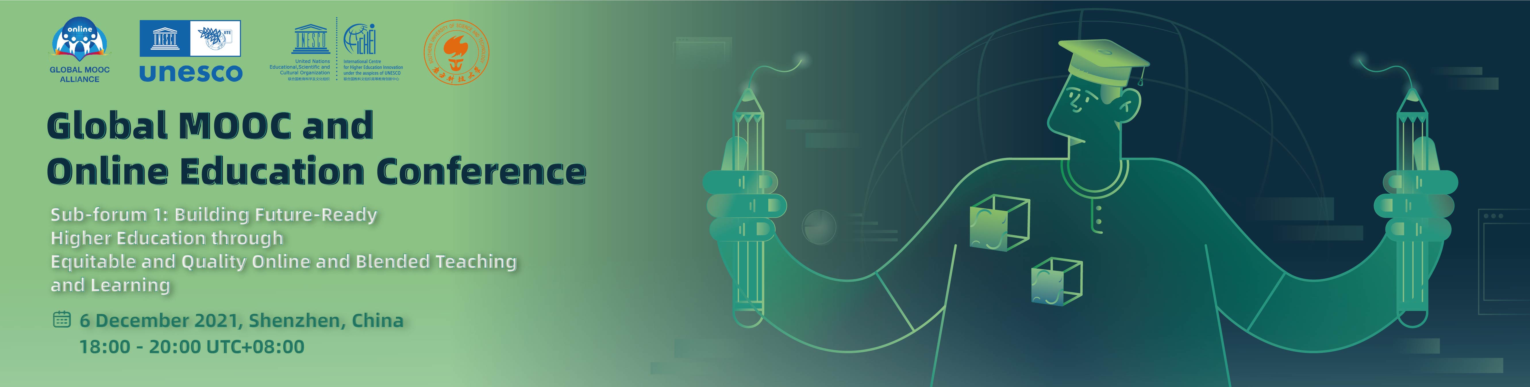 As global stakeholders continue working towards equitable and quality global learning for all, the International Centre for Higher Education Innovation under the auspices of UNESCO (UNESCO-ICHEI) and the Southern University of Science and Technology (SUSTech) are hosting the sub-forum 1 of the 2021 Global MOOC and Online Education Conference, inviting global higher education leaders to share experiences and perspectives. The theme of the sub-forum will be Building Future-Ready Higher Education through Equitable and Quality Online and Blended Teaching and Learning. Representatives from the ministries of education, higher education institutions, international organisations, and private enterprises are invited to engage in a series of keynote presentations, policy roundtable discussions, and case studies to shed light on each stakeholder's roles in building future-ready higher education under the Conference theme Together for a Shared Future - Leading Higher Education Innovation in the New Digital Era.