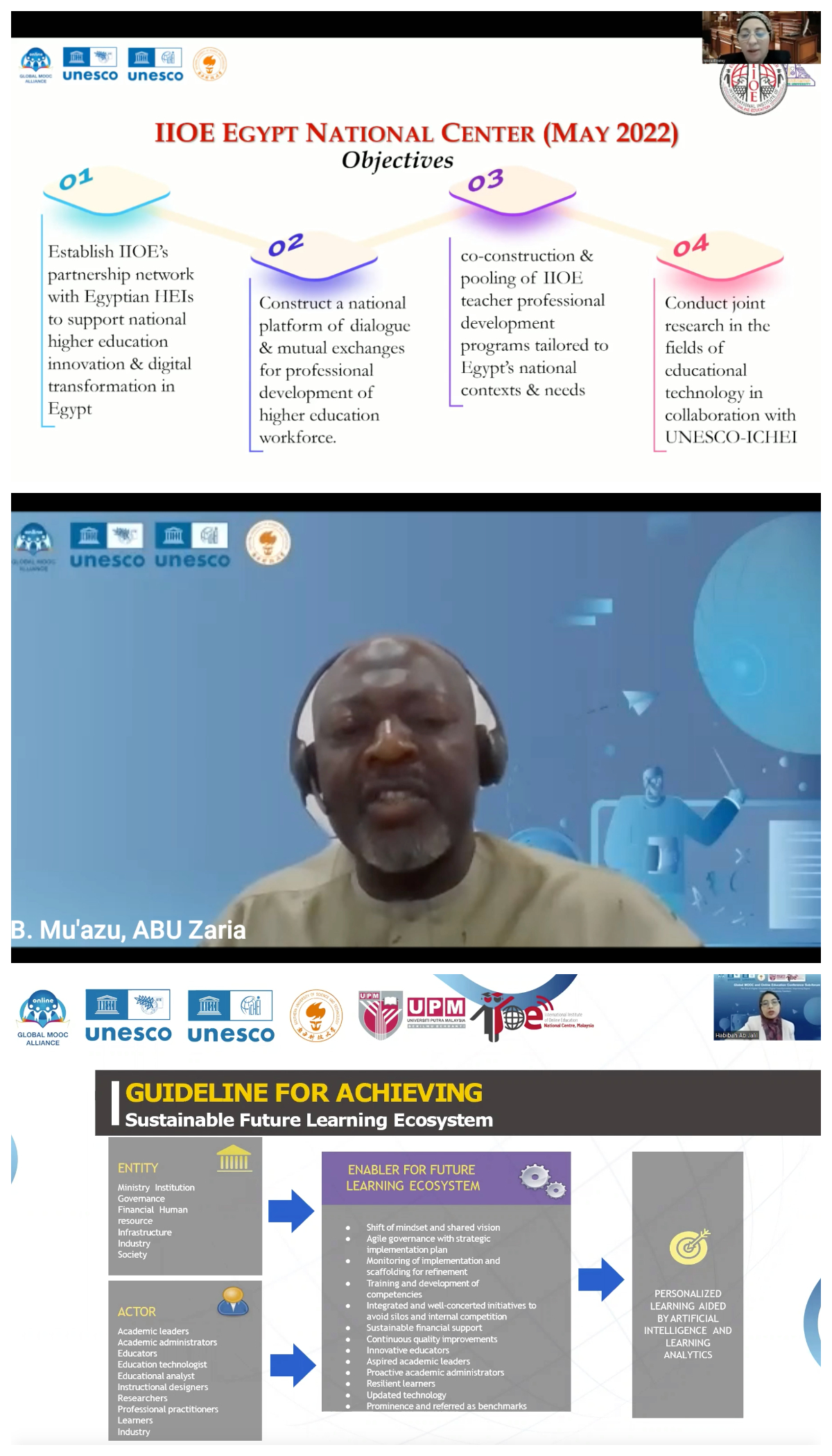 Prof. Mona Abdel-Aal Elzahry, Executive Director of Education Strategy Administration, Ain Shams University (Egypt) Director of IIOE Egypt National Centre emphasized that educators need evidence-based guidance to select appropriate concepts to incorporate into online learning models to achieve their desired educational outcomes. Educators need to plan and implement online/blended learning more broadly, supported by dedicated applied science research and shared resources. To achieve this goal, more national support for system networking may be needed.