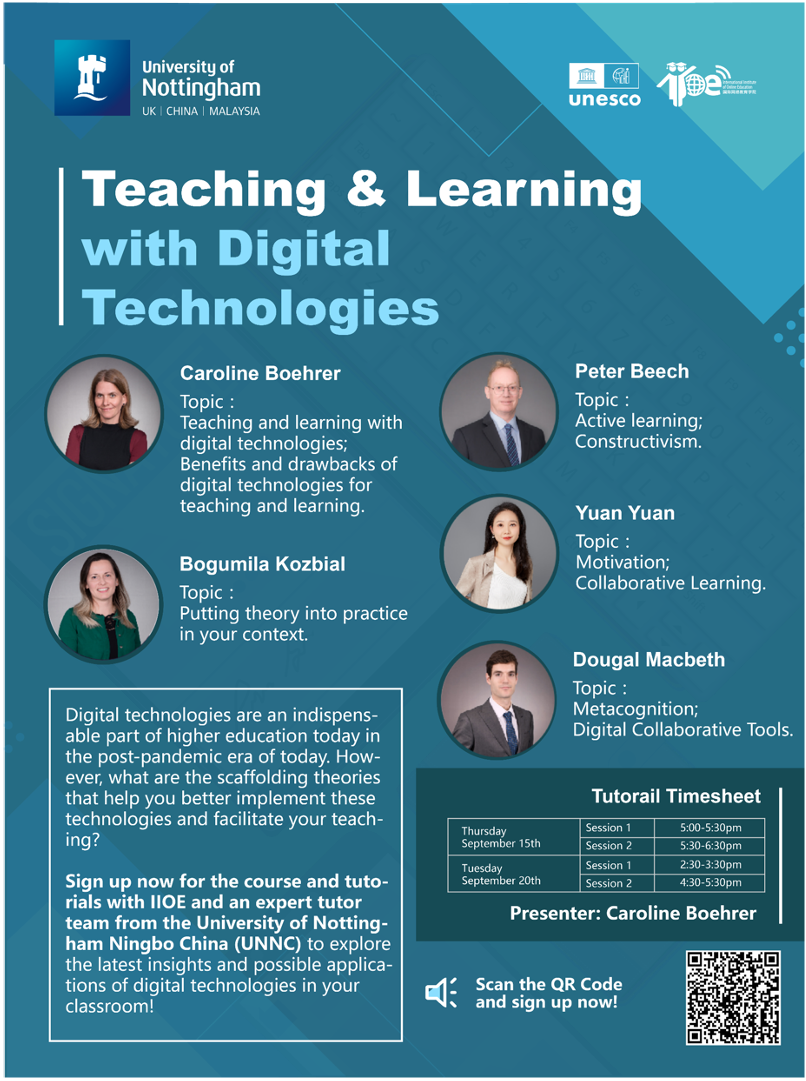 Appreciating UNNC’s support, HAN expressed herexpectations that UNNC would share its high-quality education resources anddigital transformation experience in the IIOE partnership network, and be partof UNESCO-ICHEI’s endeavor to usher in a new model of world higher educationdigital transformation via the South-North-South Cooperation.