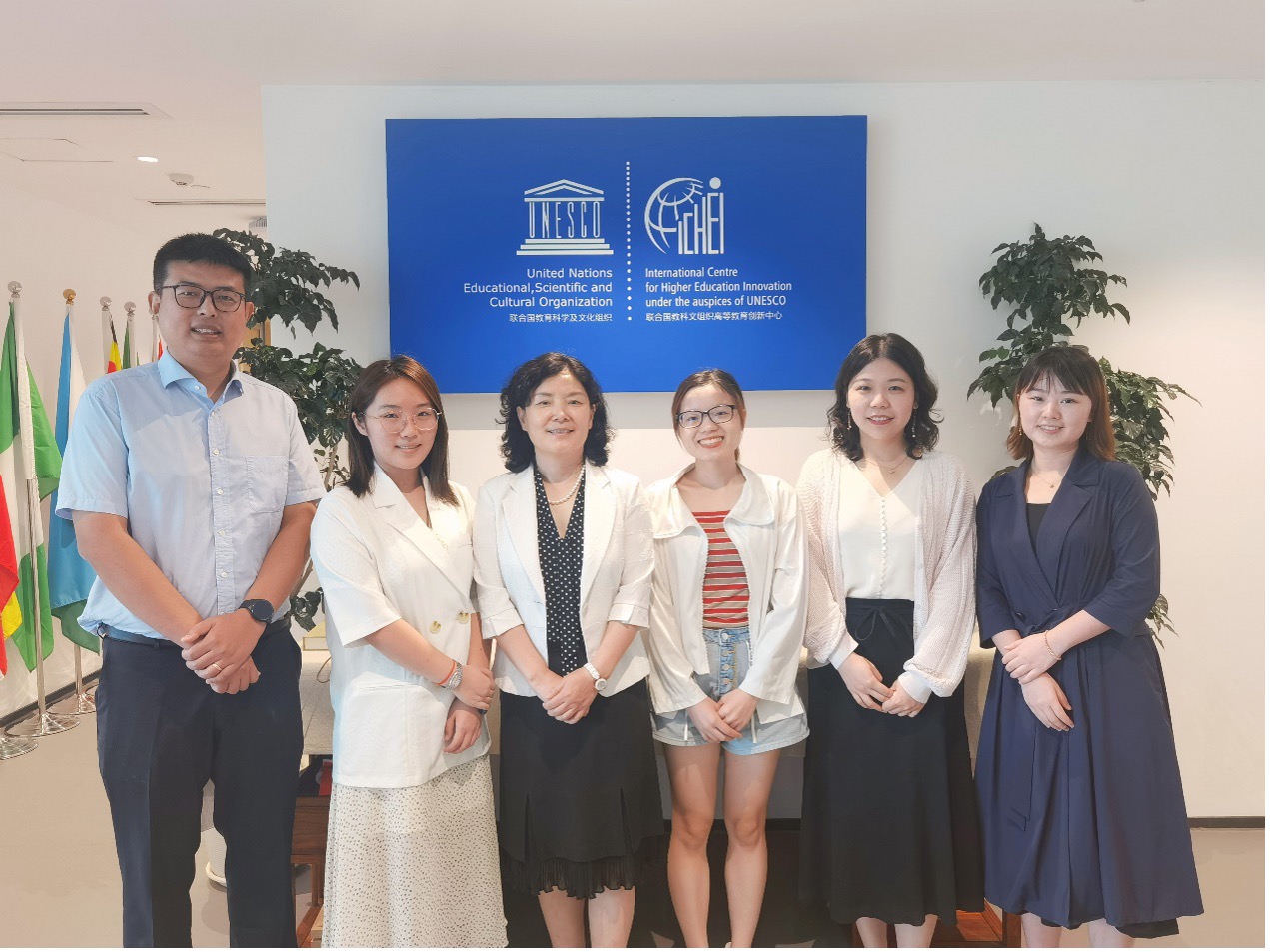 Executive Deputy Director Han Wei, Li Fan, Dr. Feng Siyuan, Yang Lan from UNESCO-ICHEI and those two volunteers