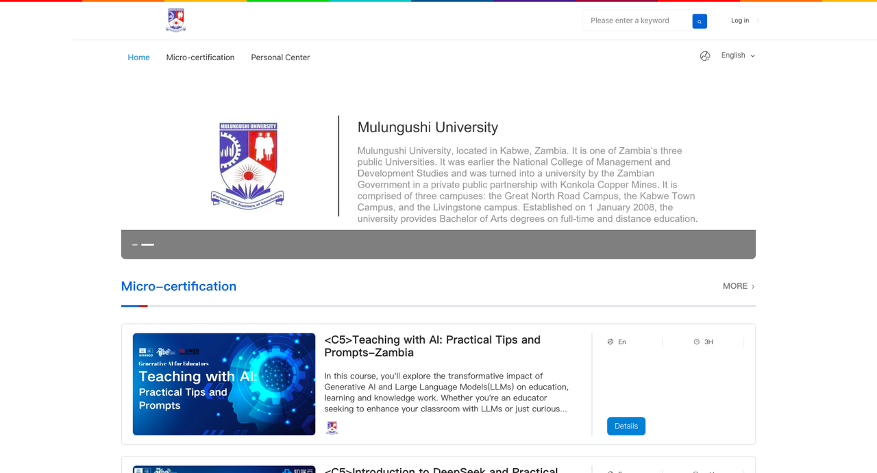 Mulungushi University, established in 2008, is Zambia's third public degree-awarding university. Operating under a self-financing model, the university is committed to advancing academic excellence and improving access to higher education. The university offers a variety of electronic resources across six main disciplines, providing students and faculty with a wealth of information and research opportunities. In alignment with Zambia's Eighth National Development Plan (8NDP) and the 2025 Key Elements for Work Plan, the university is implementing a strategic initiative in 2025 focused on micro-certification courses, emphasising digital transformation and Artificial Intelligence (AI) in education.
