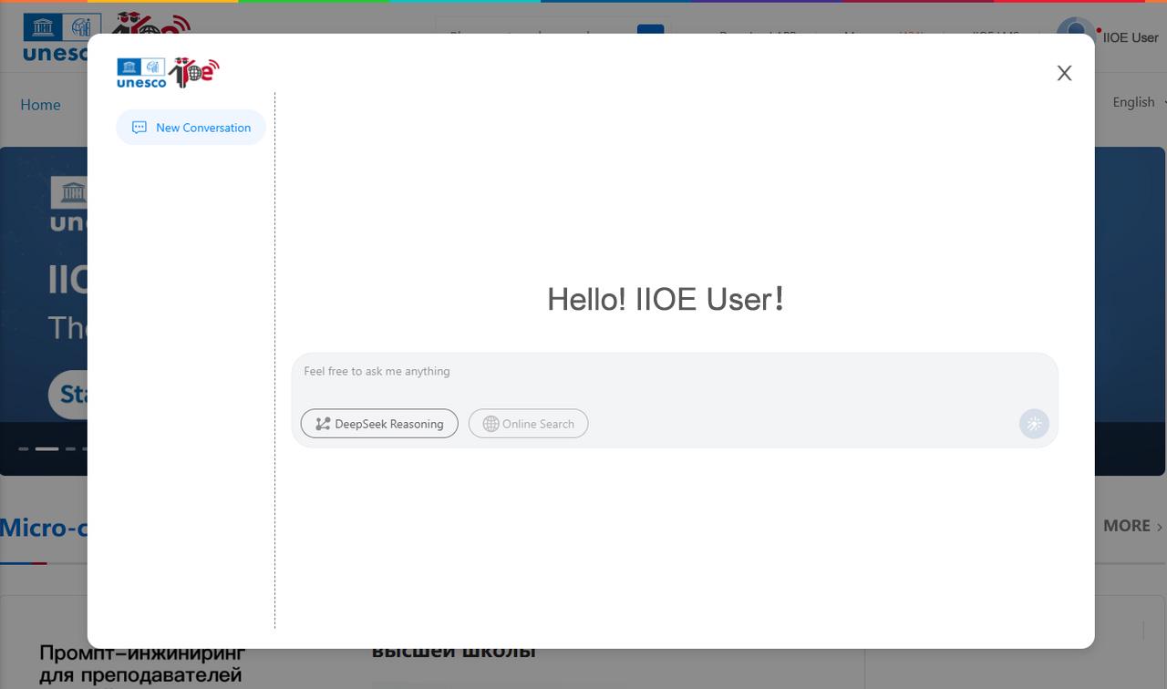 The rapid development of artificial intelligence (AI) is bringing new opportunities in education, offering higher efficiency and smarter solutions for higher education. On March 27, 2025, the International Centre for Higher Education Innovation under the auspices of UNESCO (UNESCO-ICHEI), officially launched DeepSeek on IIOE (DS-I) to the global network of partner higher education institutions (HEIs) and relevant stakeholders. This marks a milestone as UNESCO-ICHEI's flagship initiative—the International Institute of Online Education (IIOE)—successfully integrates the open-source Large Language Model (LLM) DeepSeek into its digital learning platform, and DS-I is officially in full operation. DS-I aims to provide detailed guidance and support to IIOE partner institutions and users, promoting wider utilization of AI-powered functionalities. By offering cutting-edge AI to empower university educators worldwide, this initiative highlights UNESCO-ICHEI's commitment to sharing its technological advancements with the world, particularly benefiting developing countries. It also underscores UNESCO-ICHEI’s vision of working with global partners to drive the digital transformation of education.
