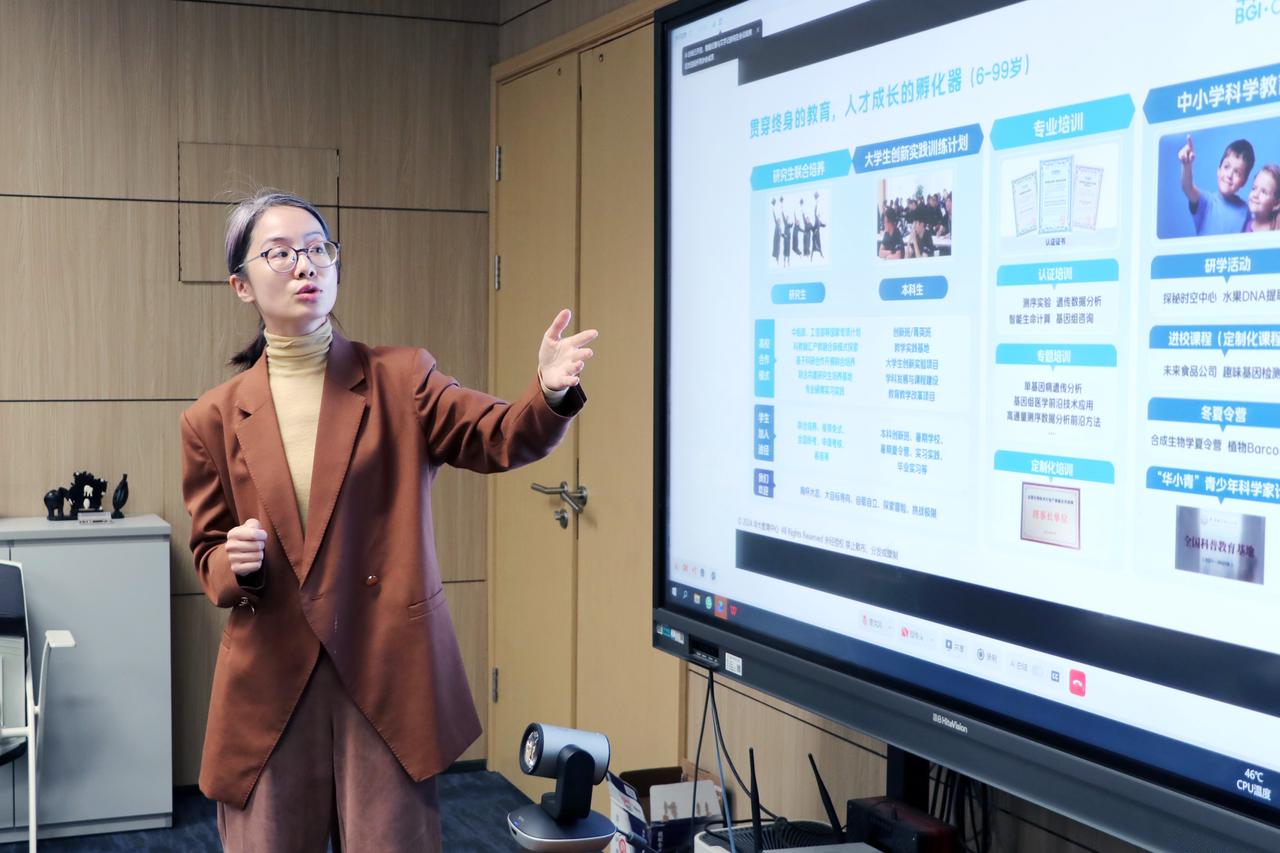 Xiao Minfeng, Vice Dean of BGI College and Researcher at BGI-Research, offered a thorough presentation of BGI’s global strategic framework and educational endeavors. She highlighted achievements in professional certification, thematic courses, tailored educational solutions, the X-omics online learning platform, and international cooperation outcomes with concrete case studies. Jiang Xiaosen, Deputy Director of BGI’s Board Office, presented a focused report on BGI’s pioneering educational approaches in the domain of “Artificial Intelligence + Business Intelligence”.