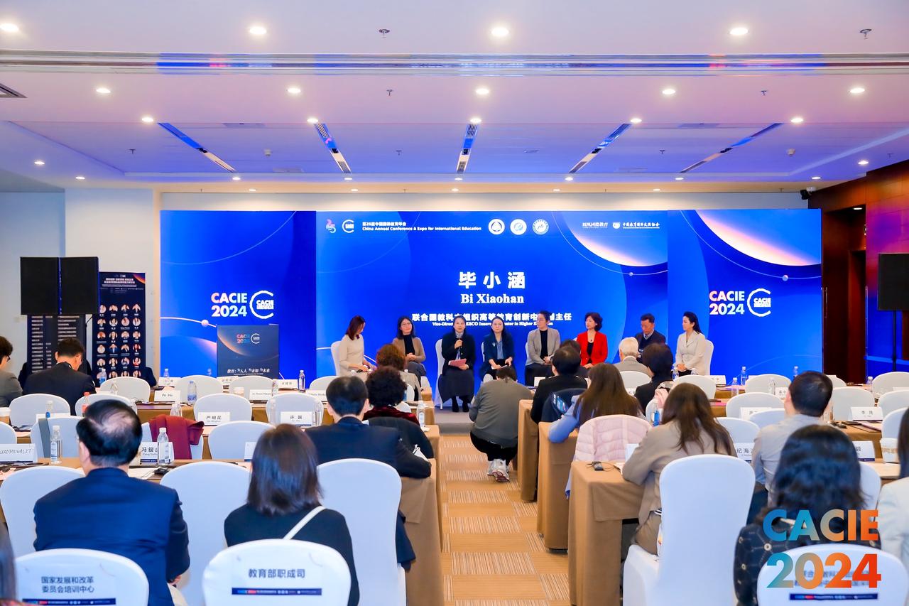 The 25th China Annual Conference Expo for International Education (CACIE) was held in Beijing from October 31 to November 2, 2024. This conference was organised by the China Education Association for International Exchange (CEAIE), under the theme of "Education For All, the Unknown and the Future", with France as the country of honour. Over 5,000 representatives from the global education sector, diplomatic officials from embassies and consulates in China, and corporate delegates from more than 60 countries and regions participated in the event. The International Centre for Higher Education Innovation under the auspices of UNESCO (UNESCO-ICHEI) delegates attended the CACIE 2024, sharing its practice in upskilling and reskilling digital and artificial intelligence (AI) competencies for teachers and leaders in higher education institutions (HEIs) worldwide.