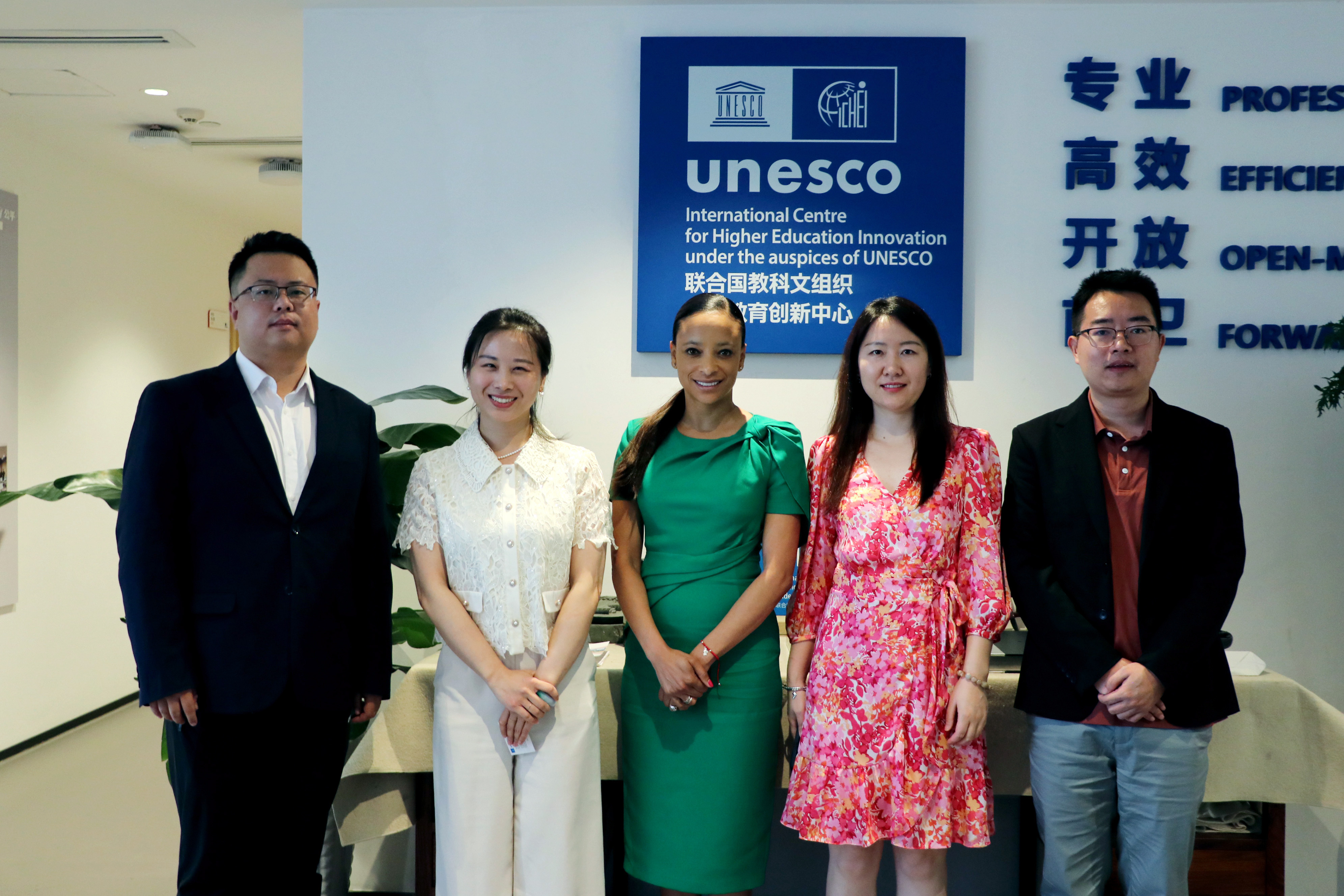 On September 12th, 2024, Ms. Esther Kuisch Laroche, Director of UNESCO Regional Office for Latin America and the Caribbean (UNESCO Santiago) , visited the International Centre for Higher Education Innovation under the auspices of UNESCO (UNESCO-ICHEI). Ms. BI Xiaohan, Deputy Director of UNESCO-ICHEI, Mr. JIAO Yanwen, Chief of the Global Partnership and Programme Office, and Mr. XU Mingshun, Chief a.i. of the Administrative Affairs Office, discussed potential collaborations with Ms. Esther Kuisch Laroche. Ms. BAO Angela, Manager of Public Affairs Communication Dept. LAC, Huawei Technologies, also participated in the meeting.