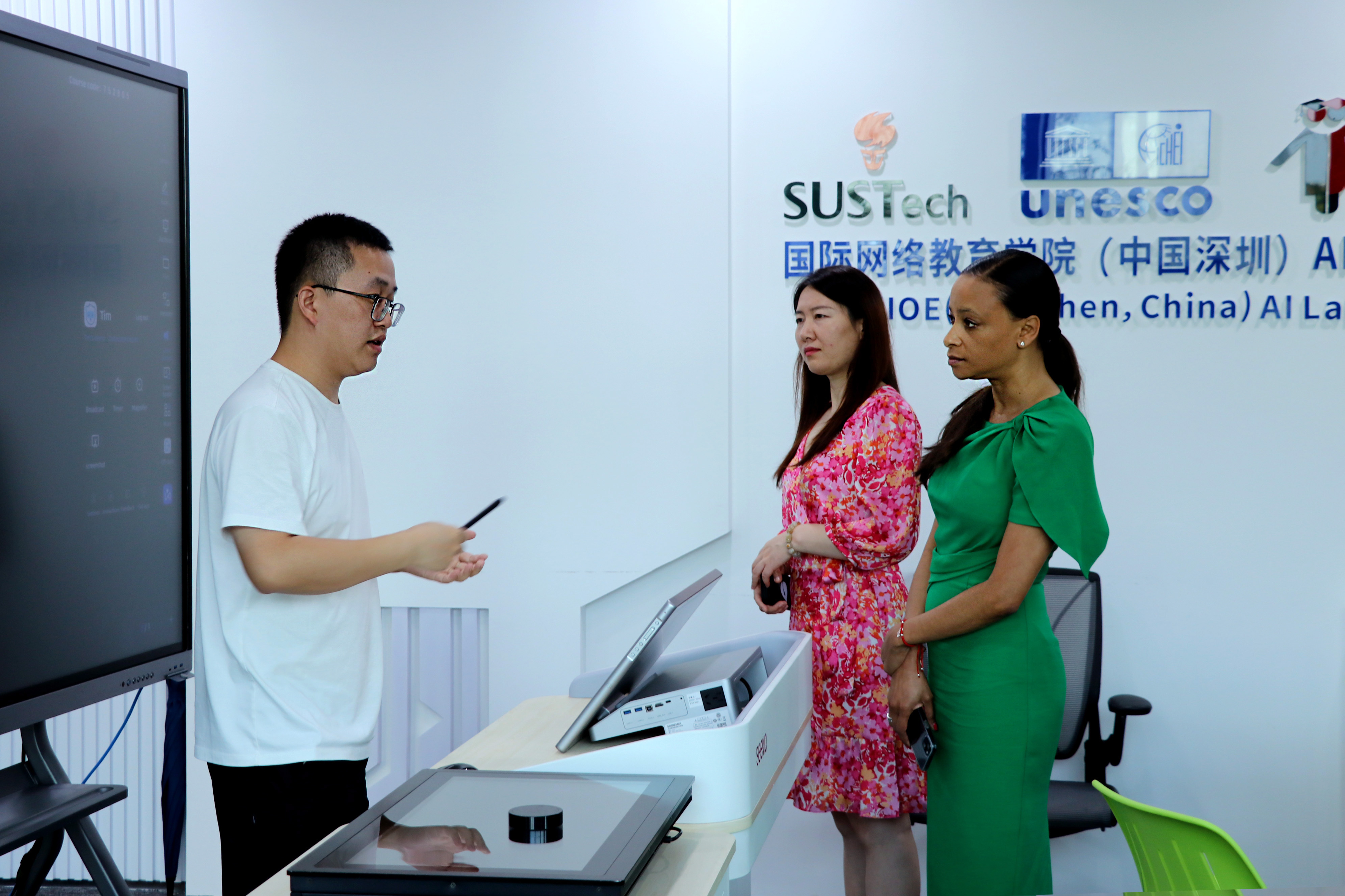 UNESCO-ICHEI and UNESCO Santiago discussed in depth about specific areas for collaboration, and reached an initial consensus on cooperation in areas such as supporting more universities to join the IIOE network, exploring opportunities to establish IIOE national centres, facilitating digital capacity building of higher education workforce through IIOE Micro-Certification Project and IIOE '1+X' GenAI Course Series, and initiating joint research projects and policy dialogues in Latin America and the Caribbean. After the meeting, the delegation visited the IIOE AI Lab.