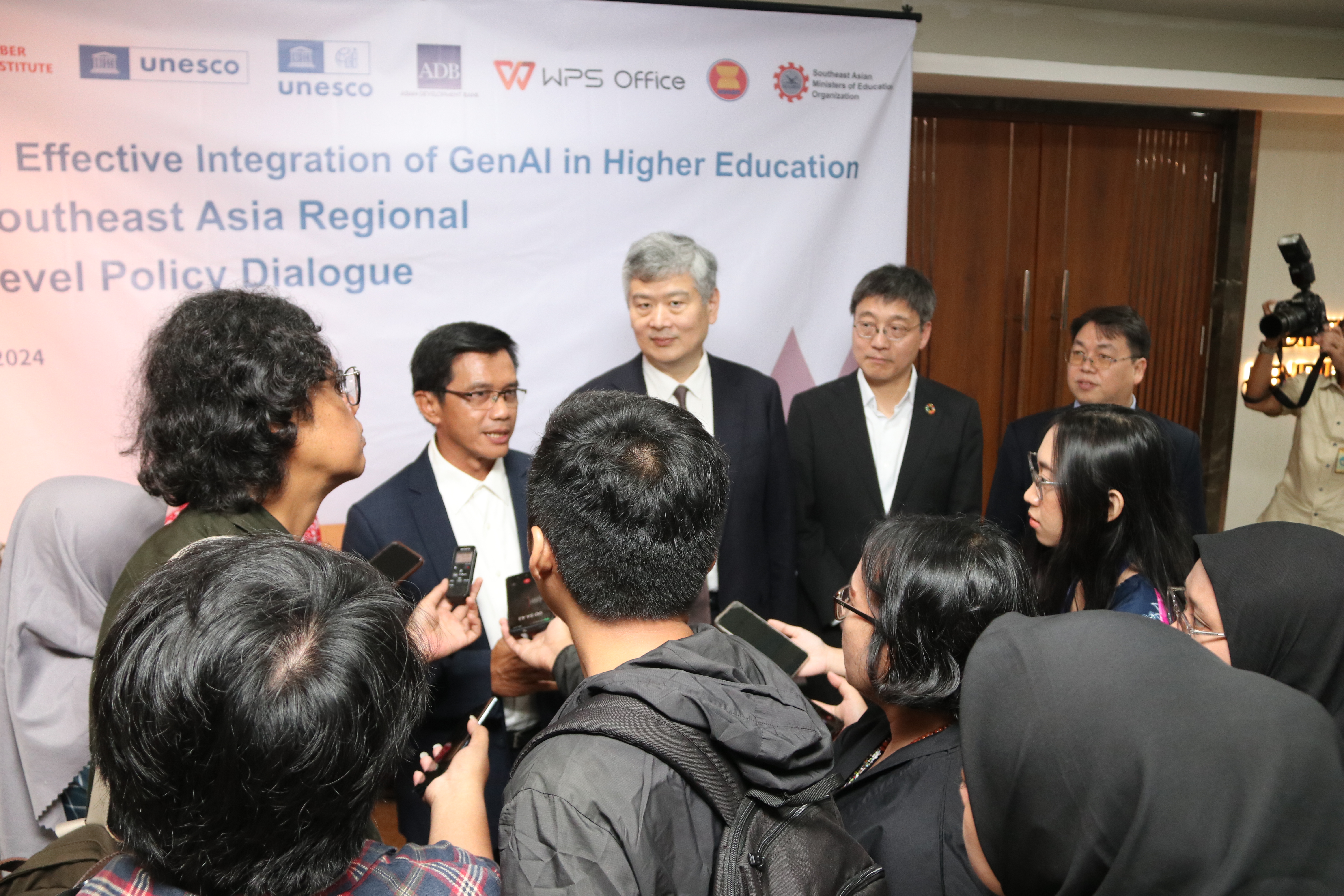 On the 25th of April, 2024, Jakarta, Indonesia, Southeast Asia Regional High-Level Policy Dialogue themed “Leading Effective Integration of GenAI in Higher Education” was co-organised by the Indonesia Cyber Education Institute (ICE-I, IIOE Indonesia National Centre), the International Centre for Higher Education Innovation under the auspices of UNESCO (UNESCO-ICHEI), UNESCO Regional Offices in Bangkok and Jakarta, with the support from Southeast Asian Ministers of Education Organisation (SEAMEO) Secretariat and Association of Southeast Asian Nations (ASEAN) Secretariat. This event was sponsored by the Asia Development Bank (ADB) and WPS Software PTE. LTD., showcasing a collaborative effort towards advancing GenAI integration into higher education across the region. Nearly 200 higher education leaders and stakeholders from China, Indonesia, Malaysia, Philippines, Thailand, Cambodia, Myanmar, and Viet Nam participated in the conference both online and offline.