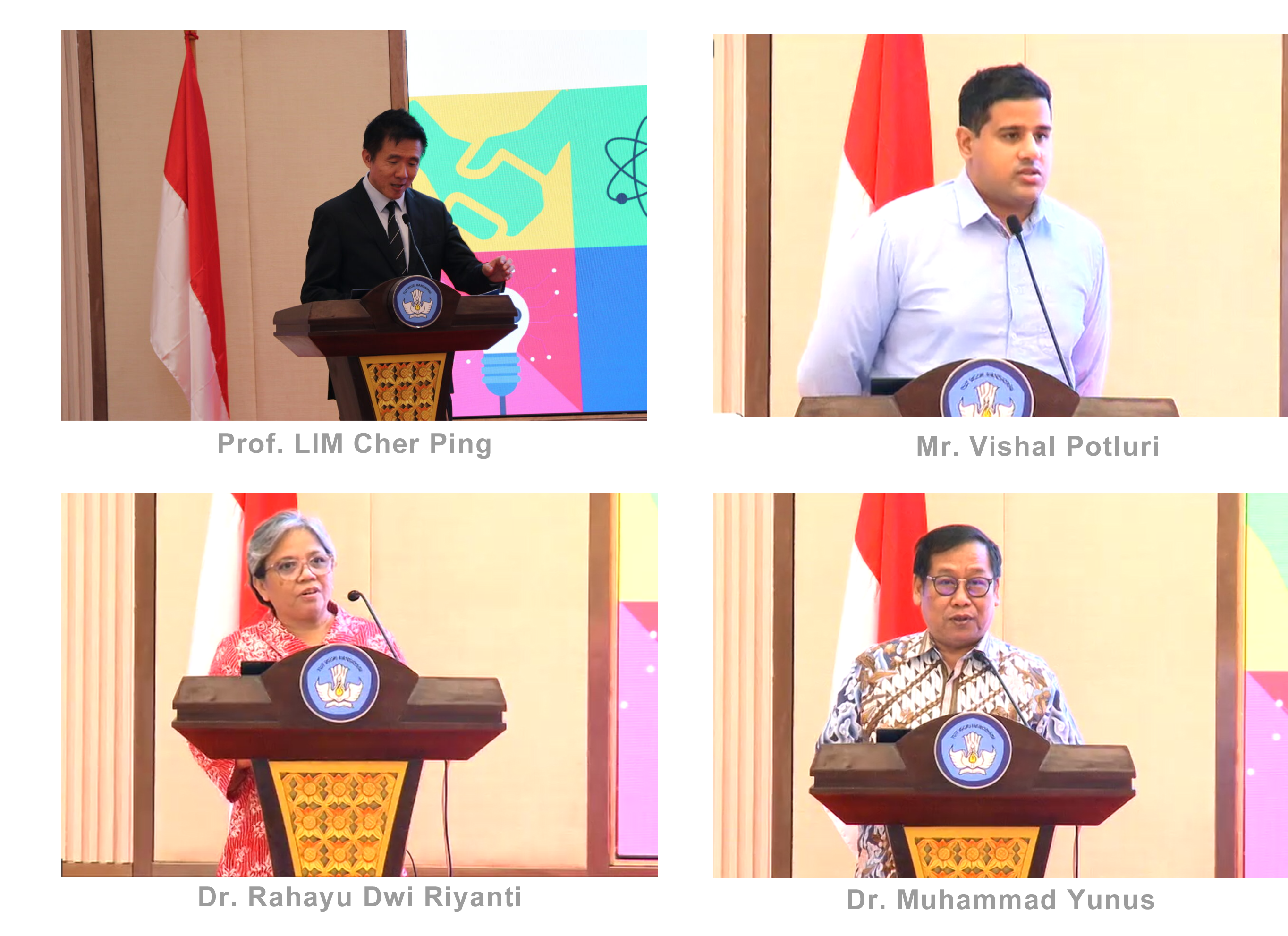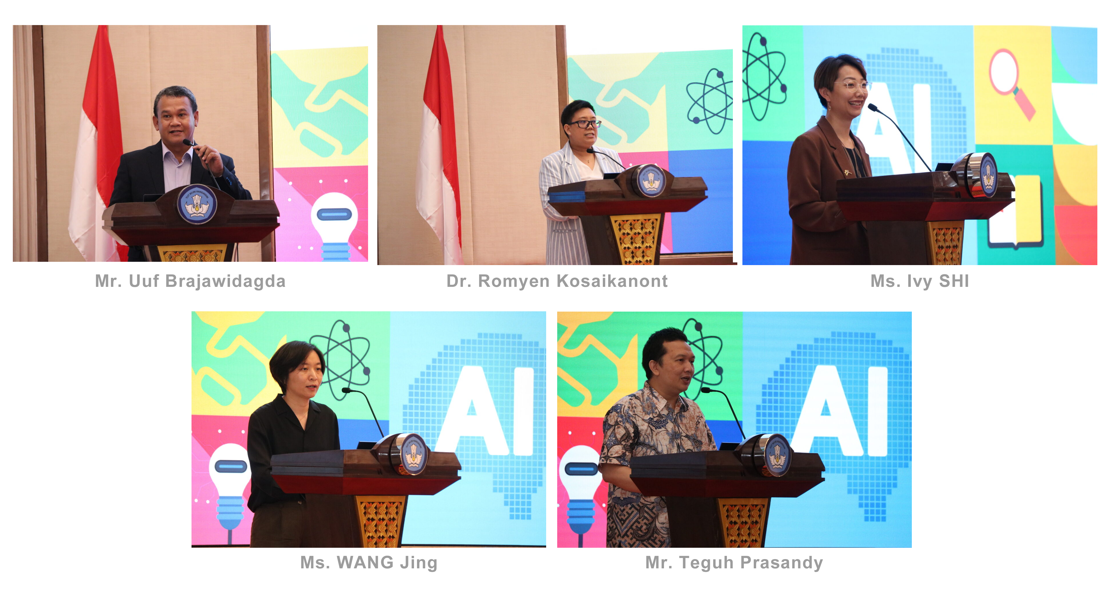 As the conference drew to a close, four distinguished speakers offered insightful closing remarks. Prof. LIM Cher Ping highlighted the critical nature of sharing practices and lessons learned across institutions and nations to adopt a holistic approach to the integration of AI in higher education, including curriculum reform, capacity building, and advocated learning to learn with AI. Shared best practices and recommendations and relevant output from this dialogue will be included in the regional recommendations for upskilling the higher education workforce. Mr. Vishal Potluri, Project Specialist, Education Practice, Human and Social Development Sector, ADB, underscored the essential role of public and private partnerships in developing AI infrastructure for education. Dr. Rahayu Dwi Riyanti, Director of Indonesia Cyber Education Institute, expressed gratitude to the attendees for their dedication and commitment to exploring the integration of AI in higher education and called for collaborative efforts to fully realise AI's transformative potential. Dr. Muhammad Yunus, Vice Rector for Academic Affairs, Universitas Terbuka (Indonesia Open University), reflected on the valuable insights from the policy dialogue, emphasising the impact of AI on pedagogies, and advocated collective action to further enhance teaching, learning, and institutional management in the age of AI.