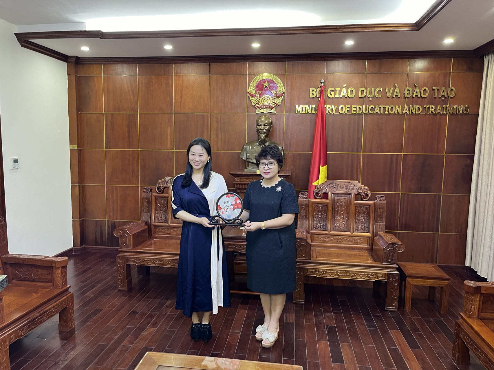 Ms. Bi Xiaohan,Deputy Director of UNESCO-ICHEI, (Left) and Asso. Prof. Nguyen Thu Thuy, Director General of Higher Education Department(Right)