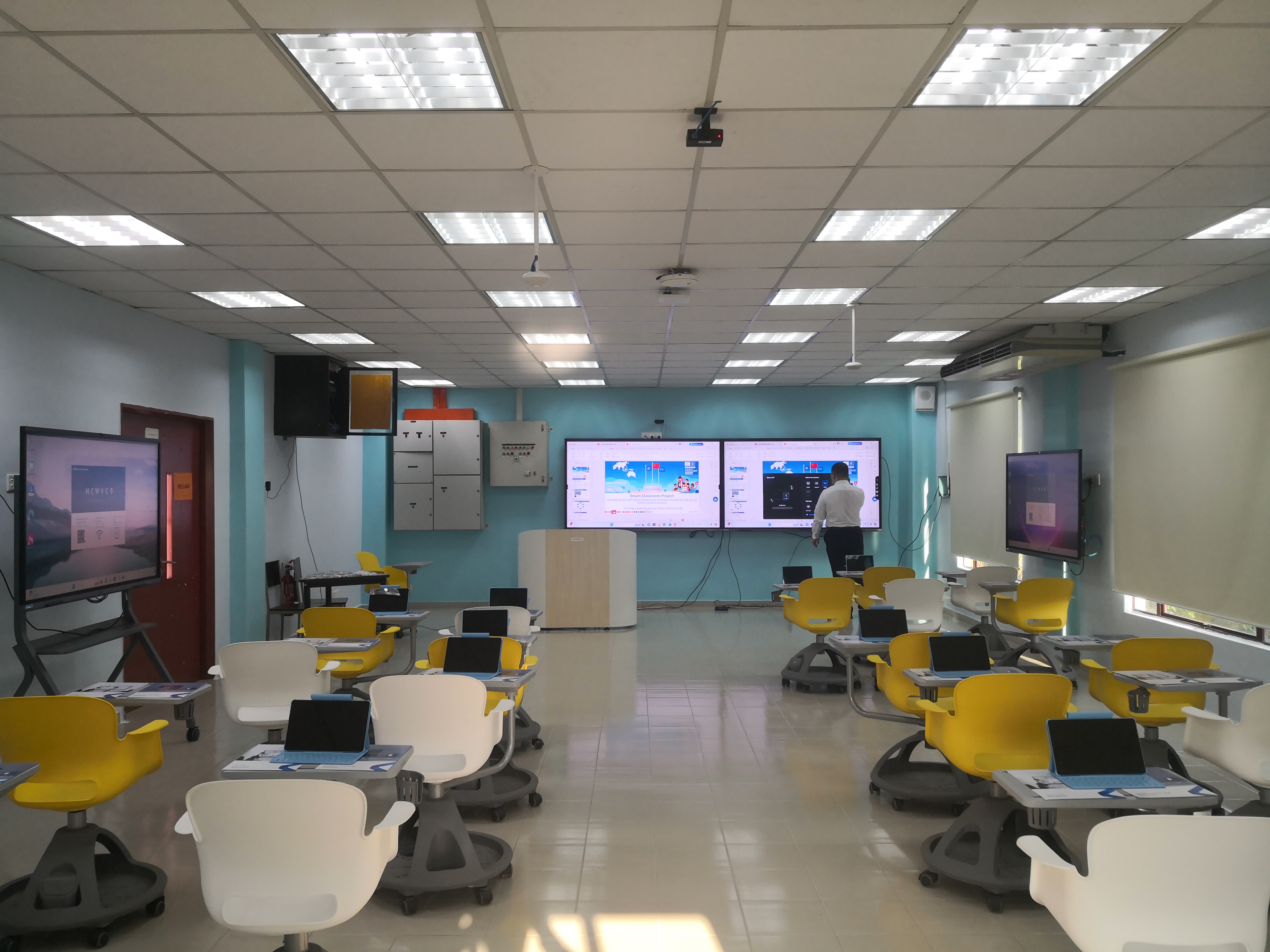 The Seewo Smart Classroom adopts the discussion-based solution, mainly consisting of interactive flat panels, a recording system, an intelligent podium, student tablets, and Pinco teaching interaction software. It realises functions such as interactive teaching and learning, course recording and sharing, and supports students in bringing their own devices to join the class. The Smart Classroom at UPM is the first to be established in collaboration with UNESCO-ICHEI and Seewo and has received high praise from UPM.