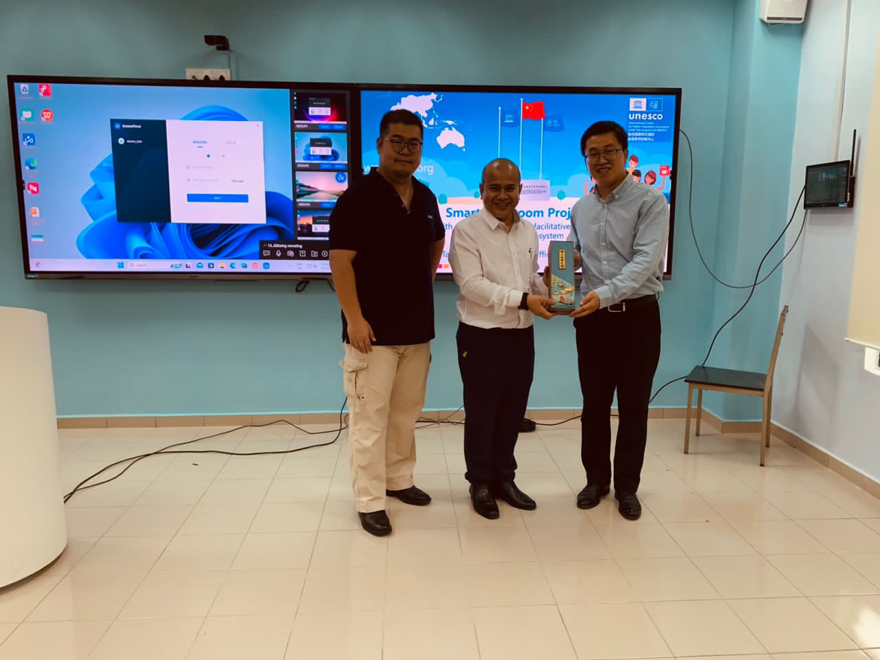 From March 25th to April 2nd, 2024, Mr. Tang Xiangzheng, CTO of the Smart Classroom Project, UNESCO-ICHEI and Yu Aobo, Project Manager, Seewo, visited the Universiti Putra Malaysia(UPM) to complete the installation and configuration of the smart classroom and conduct training on the use of the smart classroom to over 20 university personnel and 50 students. Prof. Dr. Ismi Arif Ismail, Deputy Vice-
