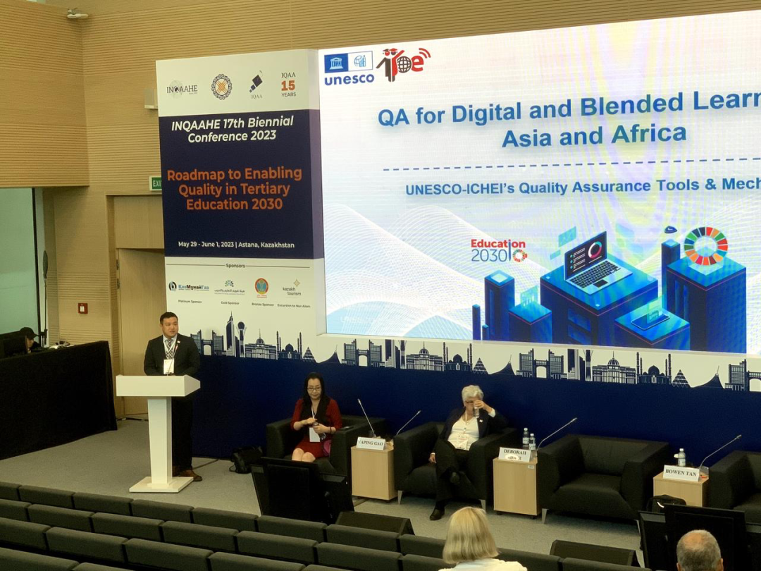 From May 29 to June 1, 2023, the 17th International Network for Quality Assurance Agencies in Higher Education (INQAAHE) Biennial Conference is being convened in Astana, Kazakhstan. Prof. HAN Wei, then Executive Deputy Director of UNESCO-ICHEI and currently Executive Deputy Secretary-General of IIOE Secretariat, led ICHEI's team and participated in the conference with great honour, and introduced the IIOE 2.0 Quality Assurance Framework, which was co-invented by ICHEI, experts and partners from different regions.