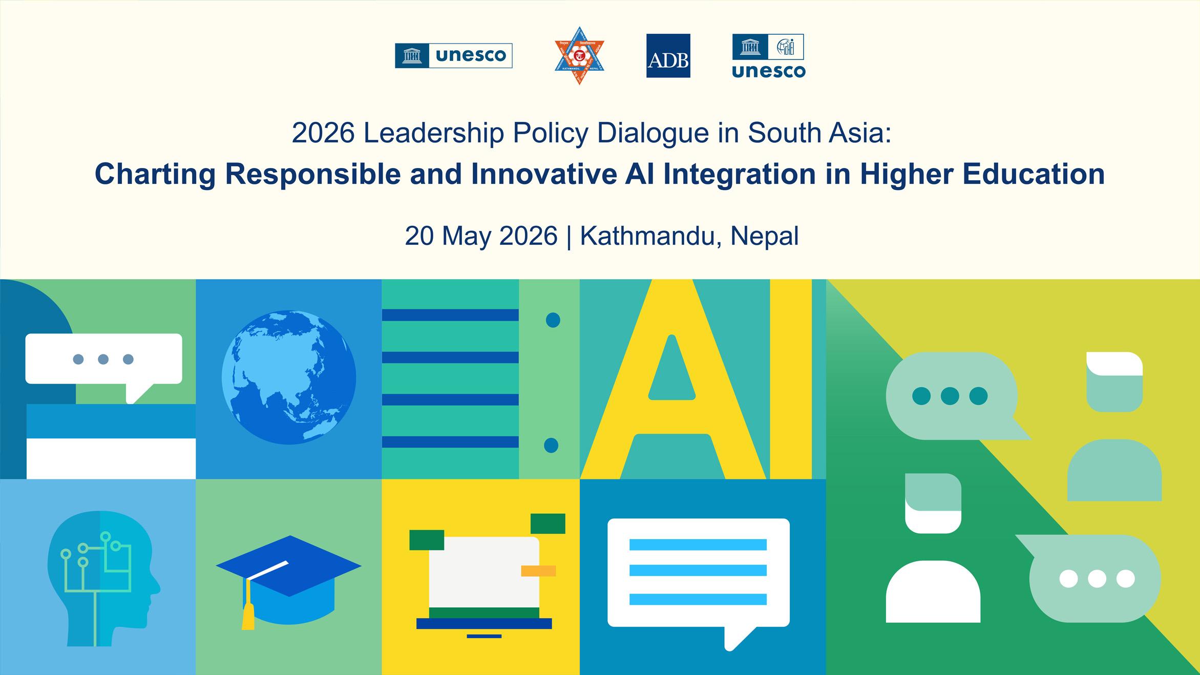 联合国教科文组织国际高等教育创新中心(UNESCO-ICHEI)自2024年以来设计与各合作伙伴协同的区域政策对话机制,将于2026年5月20日联合联合国教科文组织加德满都办事处、特里布万大学(Tribhuvan University)以及亚洲开发银行共同举办“推动南亚高等教育中人工智能的创新融合与责任应用”领导力政策对话会(Leadership Policy Dialogue in South Asia: Charting Responsible and Innovative AI Integration in Higher Education) ,旨在推进南亚地区高等教育中的人工智能(AI)融合。
