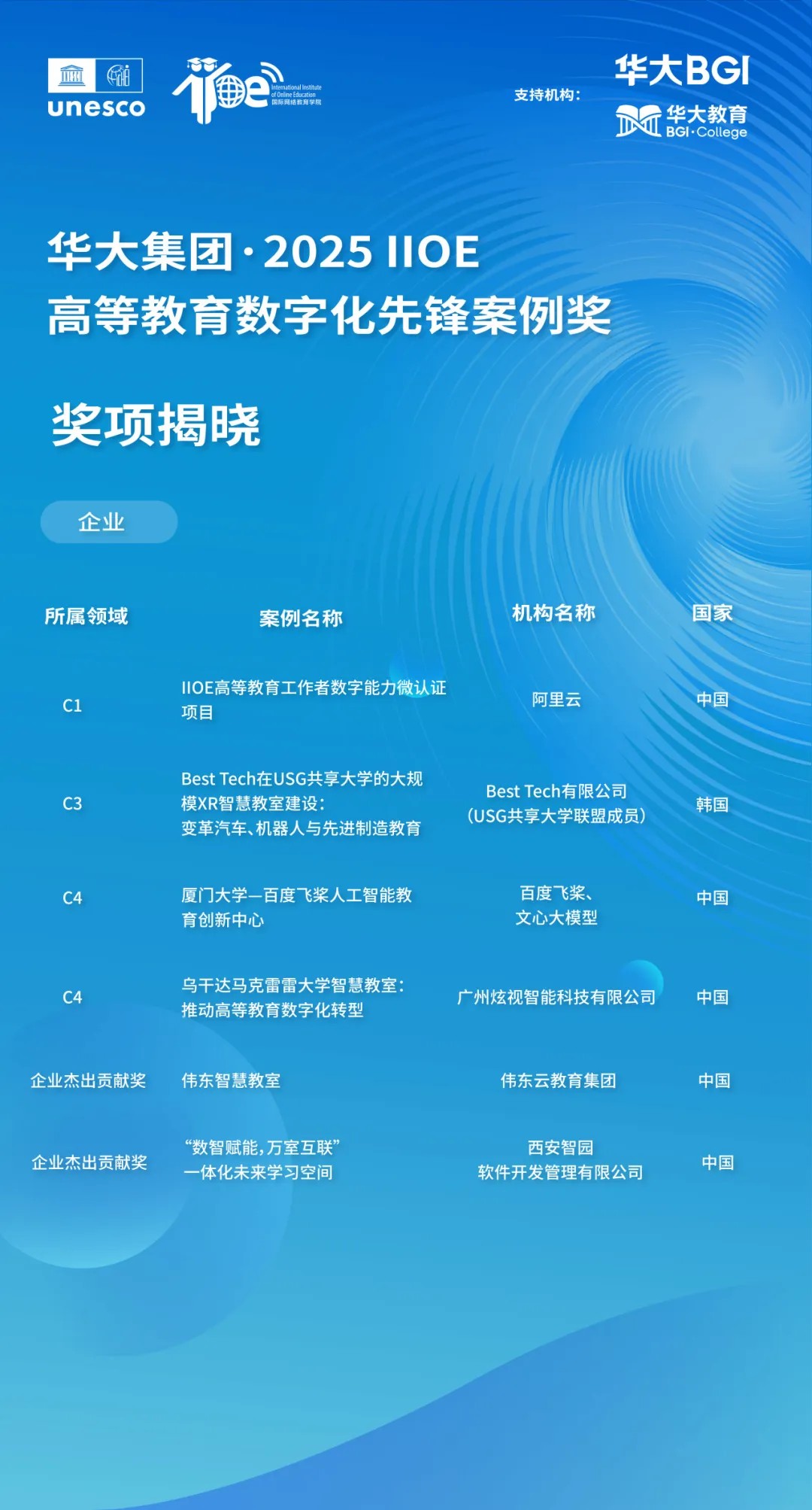 华大集团·2025 IIOE高等教育数字化先锋案例奖揭晓,颁奖仪式将于新加坡举行