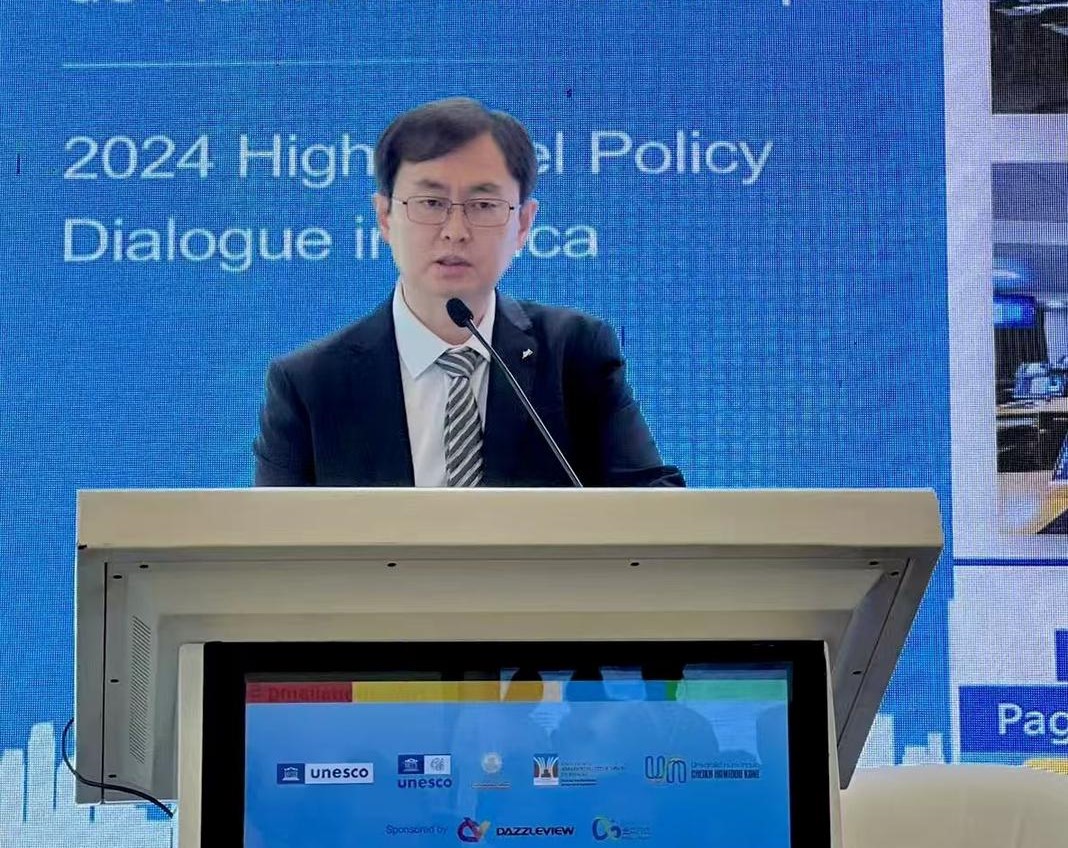 Mr. Firmin Edouard Matoko, Assistant Director-General for Priority Africa and External Relations, UNESCO, recognised the vital role of higher education in Africa and highlighted UNESCO's unique position as the only UN agency with a global mandate for higher education and its collaboration with the African Union to support key strategic frameworks. He recognised the policy dialogue as a vital platform for South-South cooperation in promoting the AI integration into higher education. Finally, he expressed his interest in gaining deeper insights into UNESCO-ICHEI's initiatives and future plans aimed at advancing educational transformation across the continent.