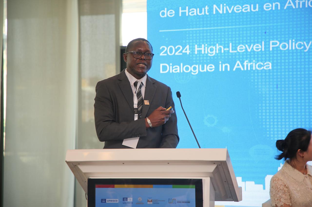 Mr. Ousmane Sall, Vice Rector, Université Numérique Cheikh Hamidou KANE, Senegal, highlighted the collective commitment to harnessing AI for positive impact, stressing the need for a holistic approach to addressing AI challenges in Africa. He summarised the key takeaways from this high-level policy dialogue by underscoring the importance of adopting and implementing inclusive educational policies; strengthening capacity building for teachers, researchers and students; and fostering strong partnerships among universities, governments, and technology companies.