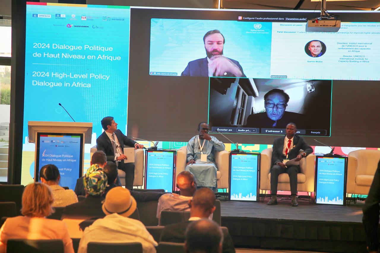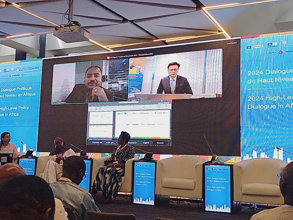 On December 13, 2024, the 2024 High-Level Policy Dialogue in Africa, themed "Operationalising Strategies for Quality Higher Education in the AI Era", was successfully held in Dakar, Senegal. The event was co-organised by UNESCO, UNESCO-ICHEI, Université Gaston Berger (UGB) - International Institute of Online Education (IIOE) National Centre in Senegal, Université Amadou Mahtar Mbow (UAM), and Université Numérique Cheikh Hamidou KANE (UN-CHK), with sponsorship from GuangZhou Dazzleview Intelligent Technology Co., Ltd. and Meta Lingual Co., Ltd. The policy dialogue brought together more than 220 crucial higher education stakeholders from all sub-regions of Africa and beyond, including senior officials from governments, representatives from UNESCO and other international and regional organisations, higher education institution (HEI) leadership, representatives of partner institutions of UNESCO-ICHEI, experts in promoting AI integration in higher education as well as gender equality, industry professionals and private sector entities.