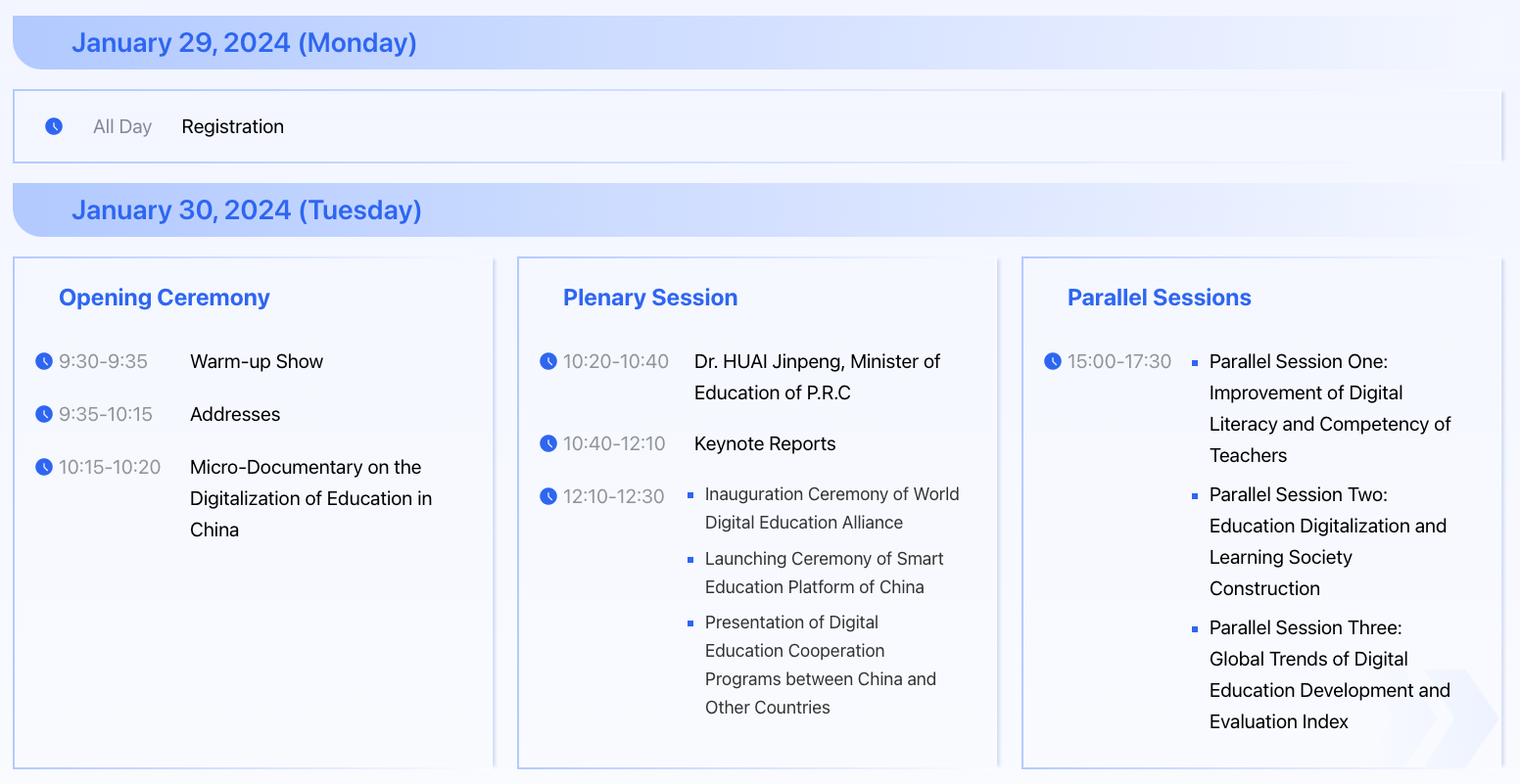 With the theme of “Digital Education: Application, Sharing, and Innovation”, the conference focuses on topics including Improvement of Digital Literacy and Competency of Teachers, Education Digitalization and Learning Society Construction, Global Trends of Digital Education Development and Evaluation Index, Artificial Intelligence and Digital Ethics, Challenges and Opportunities of Digital Transformation for Basic Education, and Digital Governance in Education.