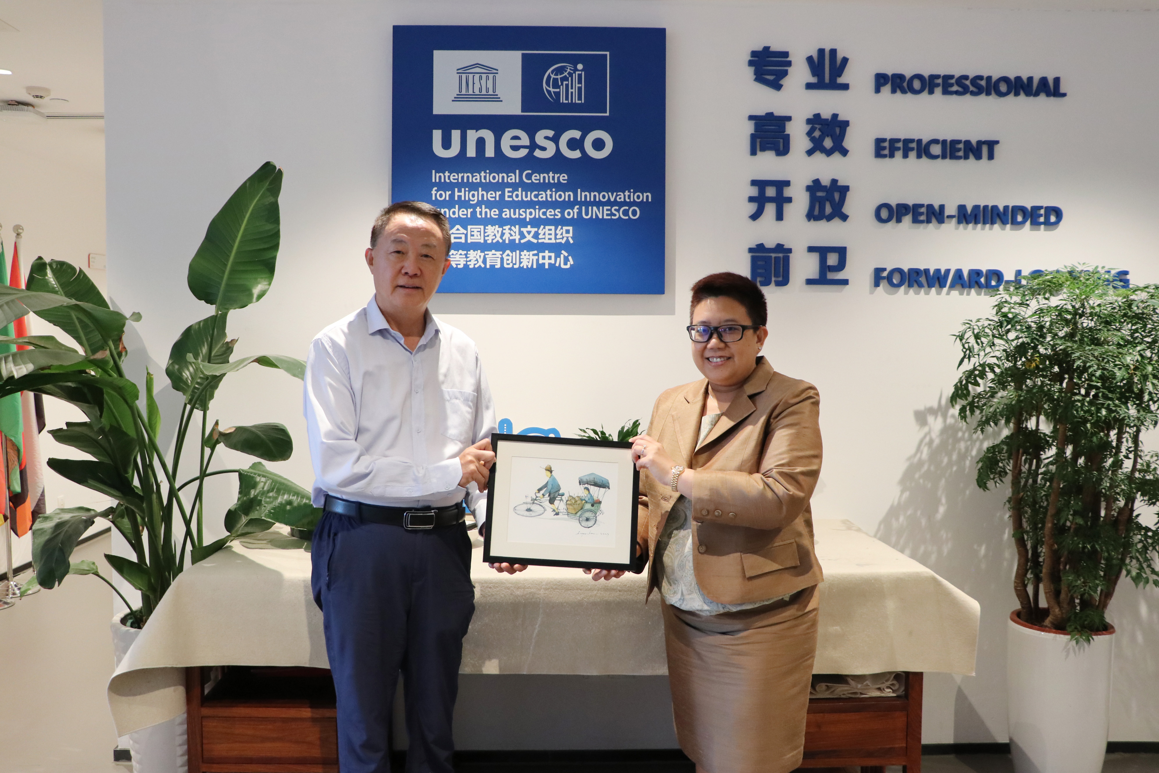 On the morning of June 15, 2023, the Southeast Asian Ministers of Education Organization Regional Institute for Higher Education Development (SEAMEO RIHED) Director Dr. Romyen Kosaikanont and her team visited UNESCO-ICHEI. Professor Li Ming, Director of UNESCO-ICHEI, and the ICHEI team received the guests. ICHEI and RIHED exchanged ideas and discussed collaborations in higher education in Southea