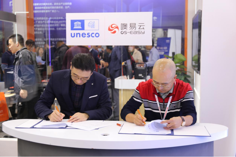 On April 8, 2023, representatives of UNESCO-ICHEI went to Chongqing to participate in the 58·59th Higher Education Expo China, and signed a strategic cooperation framework agreement and smart classroom cooperation agreement with OS-Group holding ltd. (hereinafter referred to as "OS-easy"). Mr. Xue Feng, the chief of IIOE Management Center of UNESCO-ICHEI, and Mr. Zhou Yi, the vice president of OS-
