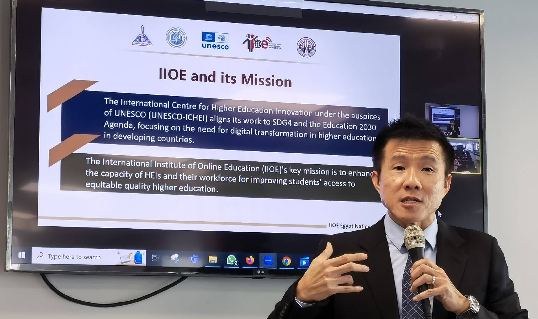 Representatives from the Ministry of Higher Education and Scientific Research and the UNESCO-ICHEI, as well as 35 representatives including presidents, vice-presidents, and deans from seven Egypt HEIs namely, Ain Shams University, Zagazig University, Port Said University, Sohag University, Suiz University, Arish University and New Mansoura University, and 70 representatives from more than 10 other Egypt HEIs participated in the conference both on-site and online. Participants discussed how HEIs leaders, governmental agencies, and enterprises can work together to shape digital leadership and chart the future course of digital transformation in Egypt higher education. All parties agreed that the IIOE is an important platform for promoting the professional development of Egypt HEIs teachers. Enhancing the digital teaching capacities of teachers and the digital leadership of HEIs leaders will promote the transformation of Egypt higher education towards competency-based teaching and learning, better link HEIs curricula with job market demands, and cultivate much needed talents for Egypt's development.