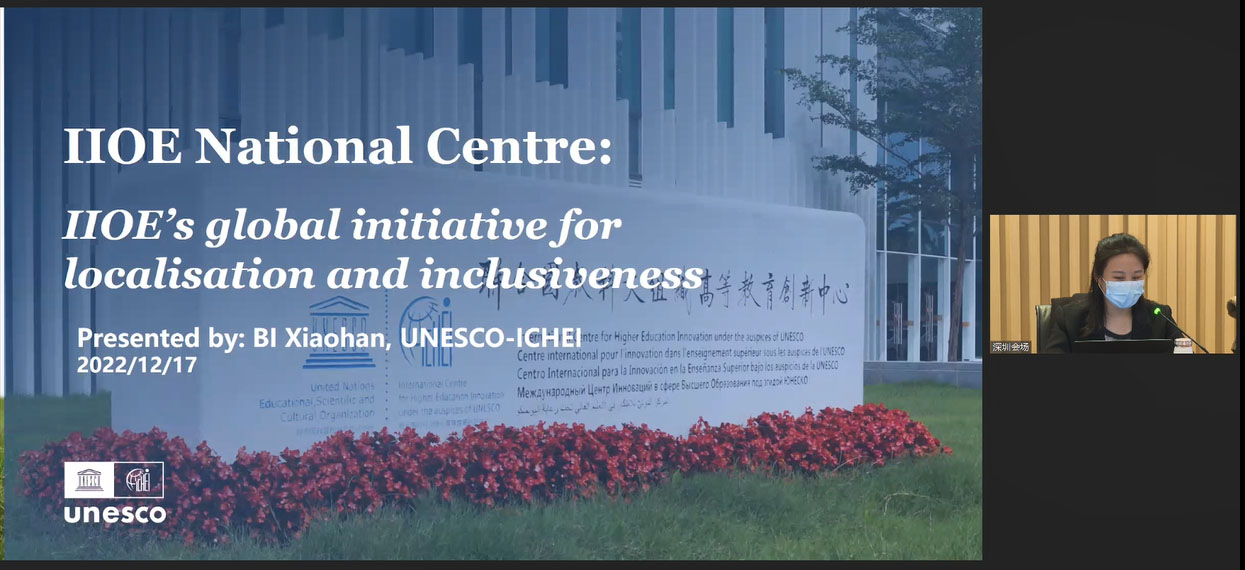 BI Xiaohan, Assistant Director and Chief of the West-Asia and Africa Programme Office of UNESCO-ICHEI gave a report on “IIOE National Centres: IIOE’s global initiative for localisation and inclusiveness”. BI Xiaohan pointed out that, with the widening application of digital technology in higher education, global HEIs have become increasingly aware of the importance of digital transformation for teaching and studying. IIOE’s traditional bilateral cooperation model could no longer meet an ever-increasing need for membership and cooperation from more HEIs. The establishment of IIOE National Centres is the proactive response made by UNESCO-ICHEI to the global educational transformation. As for the operational mechanism of the IIOE National Centres, BI Xiaohan said, UNESCO-ICHEI will empower IIOE National Centres by launching and implementing tailored pilot projects, so as to establish a central hub for the IIOE network in the project country, better serving and supporting the digital transformation of the higher education.