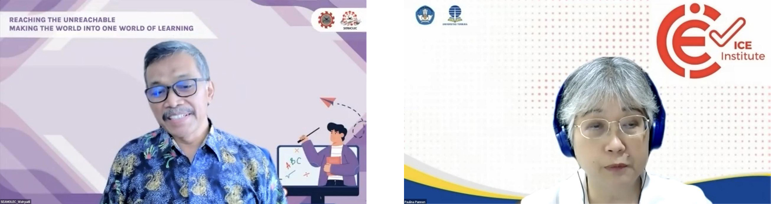 Dr. Wahyudi, Director of SEAMOLEC and Prof. Paulina Pannen, Chair of Indonesia Cyber Education Institute (ICE-I) delivered congratulatory remarks respectively