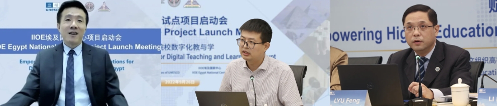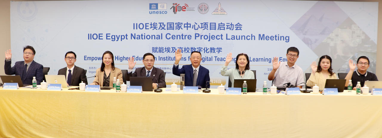 Professor LI Ming, Director of UNESCO-ICHEI, fully acknowledged Ain Shams University's role as the first rotating presidency unit of IIOE in guiding the development of IIOE and building IIOE Egypt National Centre. He believed that the project is innovative, focusing on the  systematic improvements of university teachers' digital capacities, which would accelerate the digital transformation of higher education teaching and learning in Egypt. He expects that the localised and personalized outcomes of the IIOE Egypt National Centre project can offer as scalable cases for the digital transformation of global higher education.