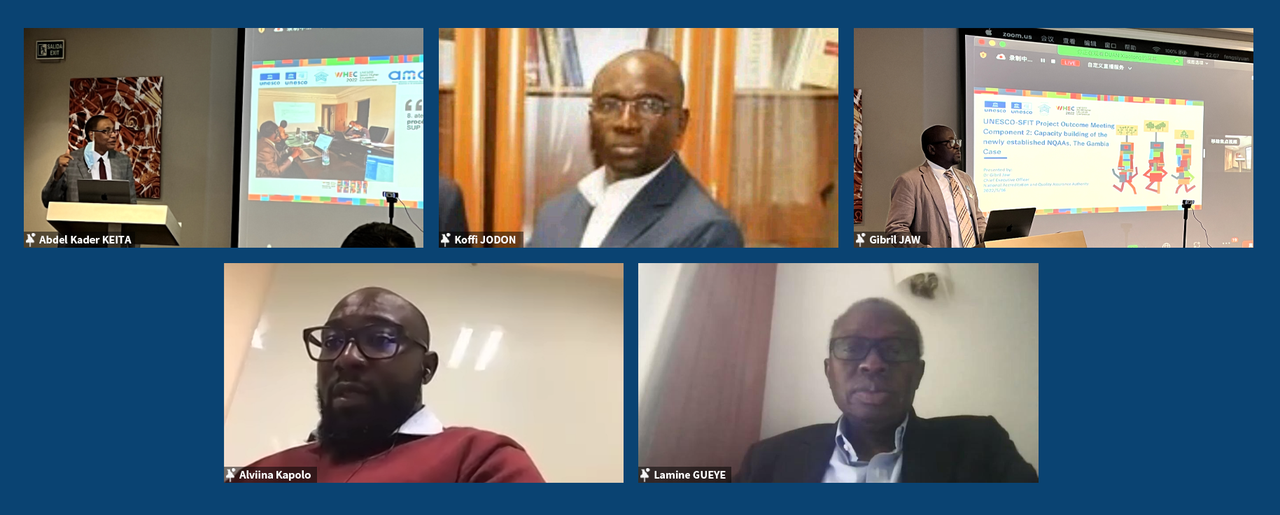 On 16 May, 2022, the UNESCO-Shenzhen Funds-in-Trust (UNESCO-SFIT) Africa Project Outcome Meeting was successfully held in Barcelona, Spain. The meeting was jointly organised by the International Centre for Higher Education Innovation under the auspices of UNESCO (UNESCO-ICHEI) and UNESCO, under the theme "Strengthening Quality Assurance Systems to Build an Inclusive and Resilient Future for African Higher Education" within the framework of the 2022 World Higher Education Conference (WHEC2022), with the aim to showcase the results of UNESCO-SFIT Africa project and to discuss quality assurance of online and blended higher education and potential topics of future collaboration.