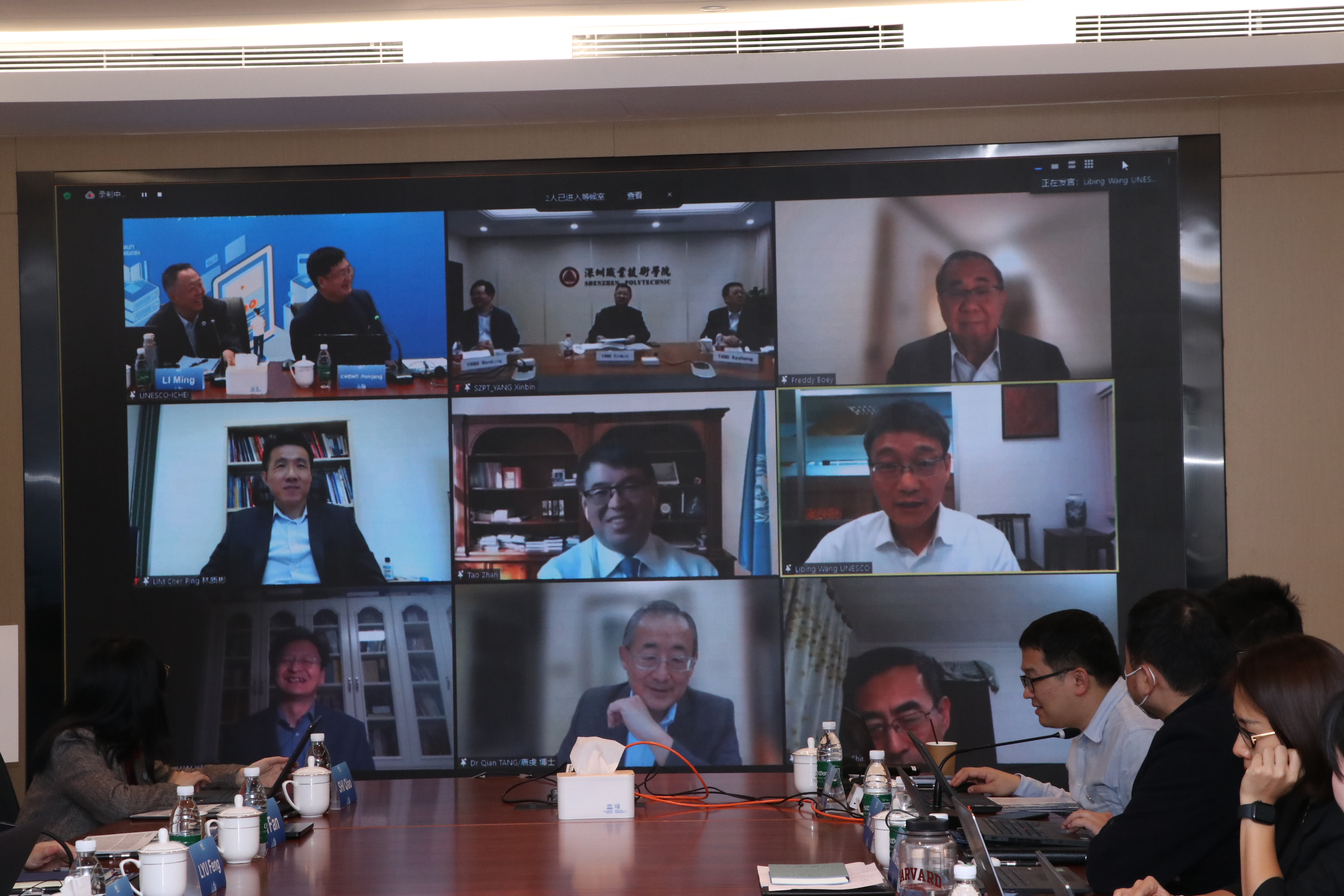 The experts present at this meeting are: TANG Qian, former Assistant Director-General for Education of UNESCO; Shahbaz Khan, director of UNESCO Beijing Office; ZHAN Tao, Director of UNESCO Institute for Information Technologies in Education (IITE); QIN Changwei, Secretary General of the Chinese National Commission for UNESCO;  YANG Xinbin, Chairman of Board and President of Shenzhen Polytechnic; WANG Libing, Chief of Section for Educational Innovation and Skills Development, UNESCO Asia and Pacific Regional Bureau for Education; Michaela Martin, Programme Specialist of the UNESCO International Institute for Educational Planning (IIEP); LIM Cher Ping, Chief Expert of IIOE at UNESCO-ICHEI, Chair Professor of Learning Technologies and Innovation at the Education University of Hong Kong; Waqar Mahmood, Director of AI-Khawarizmi Institute of Computer Science (KICS), University of Engineering and Technology, Lahore (Pakistan); ZHAO Jianhua, Associate Director of the Center for Future Education Research of SUSTech, Senior Expert of UNESCO-ICHEI as well as representatives from ICHEI cooperation information-based enterprises.