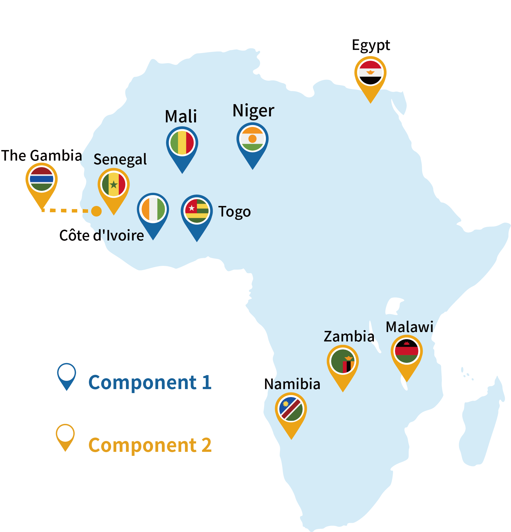 2. Institutional capacity-building of recently established QA agencies in Egypt, Gambia, Malawi, Namibia, Senegal, and Zambia.