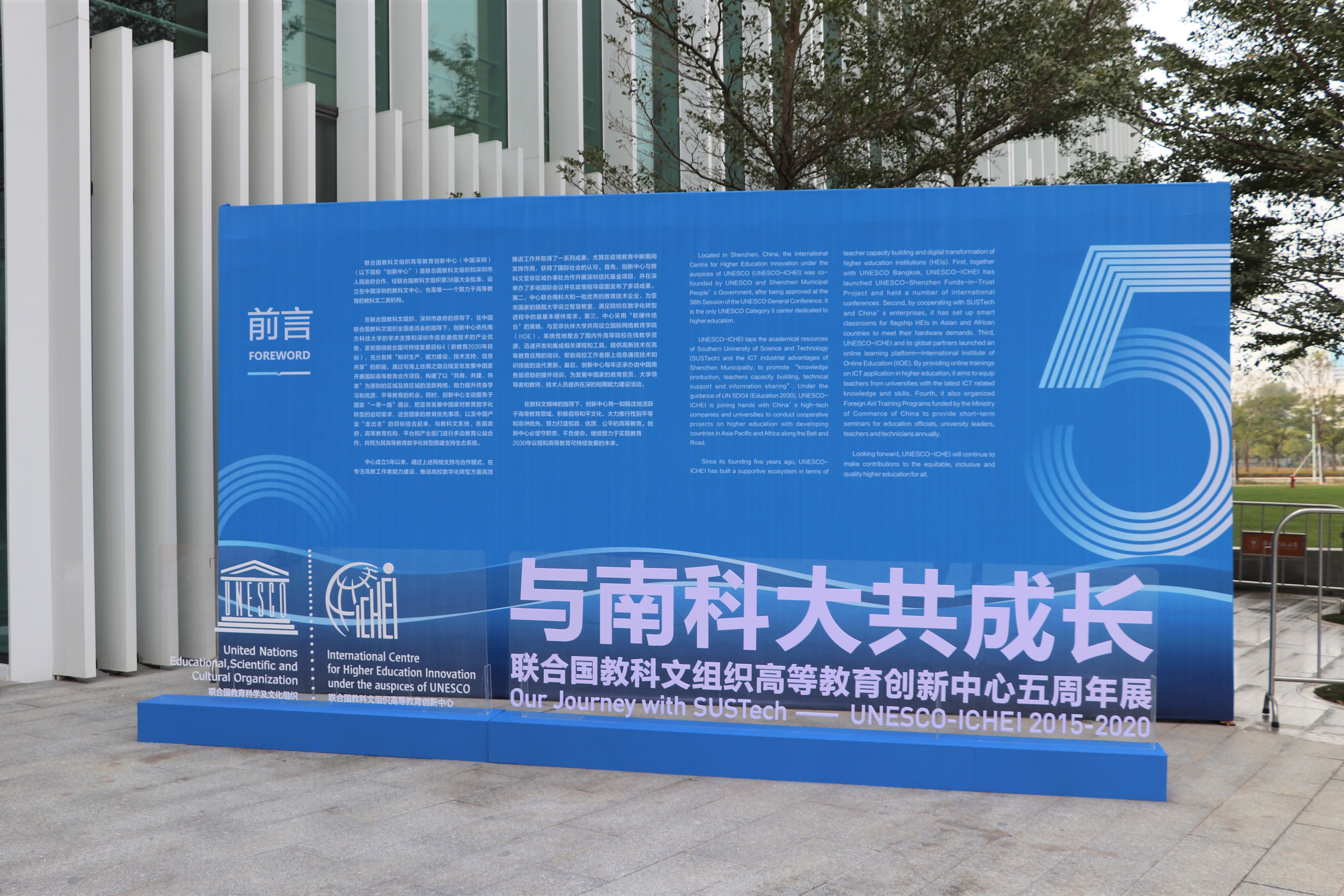 Our Journey with SUSTech—UNESCO-ICHEI 2015-2020 successfully held in the lobby of SUSTech Convention Center(December 20-31, 2020) After the ceremony, guests visited the exhibition, "Our Journey with SUSTech—UNESCO-ICHEI 2015-2020". Relying on the academic excellence of SUSTech, UNESCO-ICHEI was co-founded by UNESCO and Shenzhen Municipal People's Government and serves as the only UNESCO Category II center dedicated to higher education. UNESCO-ICHEI remains committed to SDG4 and the Education 2030 Framework for Action, promotes higher education digitalization through ICT application and conducts exchanges and cooperation in higher education with Asian and African countries along the marine time silk road so as to achieve inclusive and equitable quality higher education. What's more, UNESCO-ICHEI has facilitated SUSTech in enrolling international students, increasing visibility at international conferences and establishing a global network of partner HEIs.
