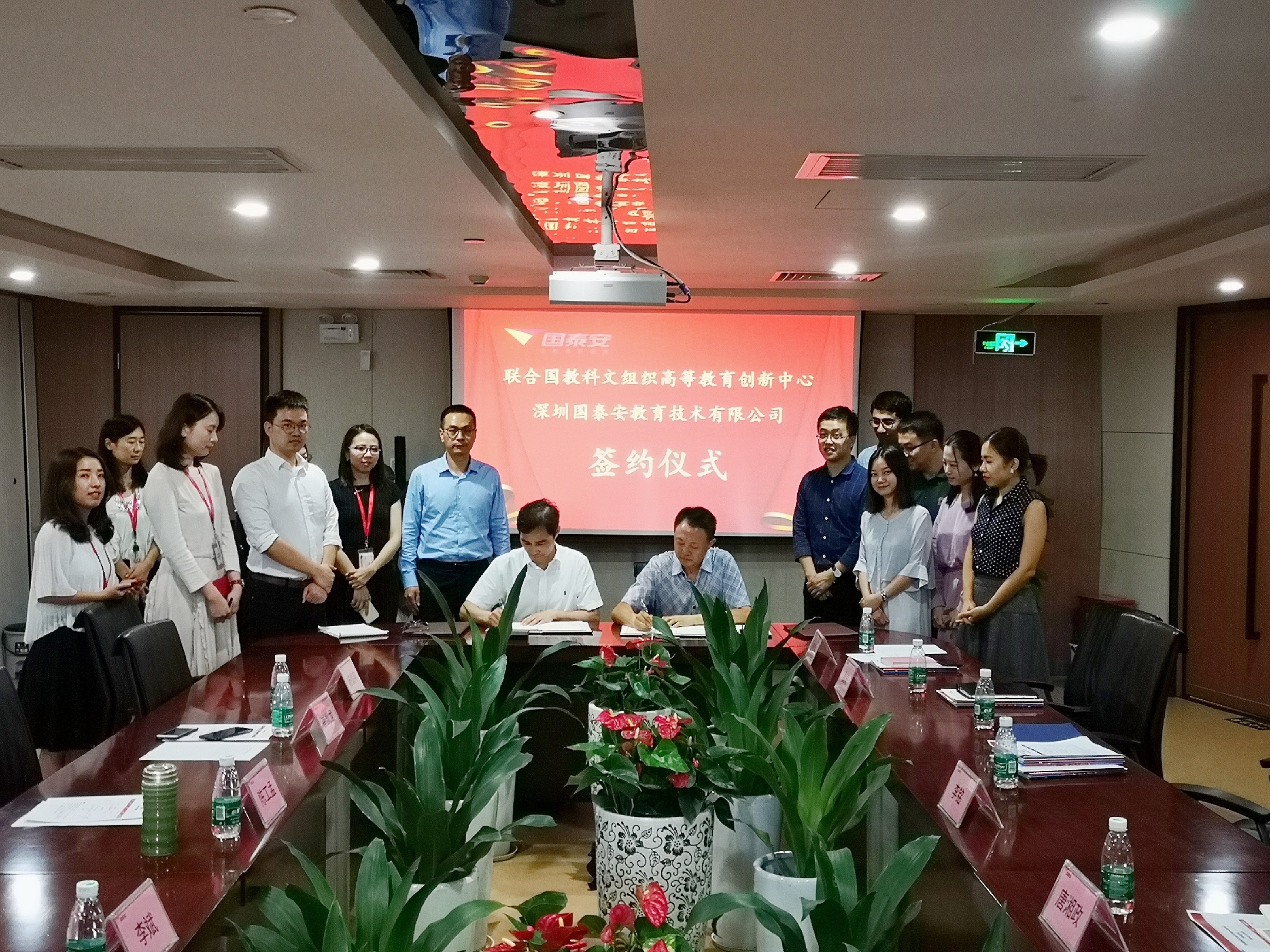 On June 20, 2019, Prof. Li Ming, the director of UNESCO-ICHEI visited Shenzhen GTA Education Tech Ltd. Dr. Chen Gongmeng, the president of GTA, and his team gave a warm reception. The two sides discussed deeply about the strategic cooperation and signed cooperation agreements. Director Li Ming also experienced GTA smart education exhibition hall and spoke highly of their products.Sign Cooperation