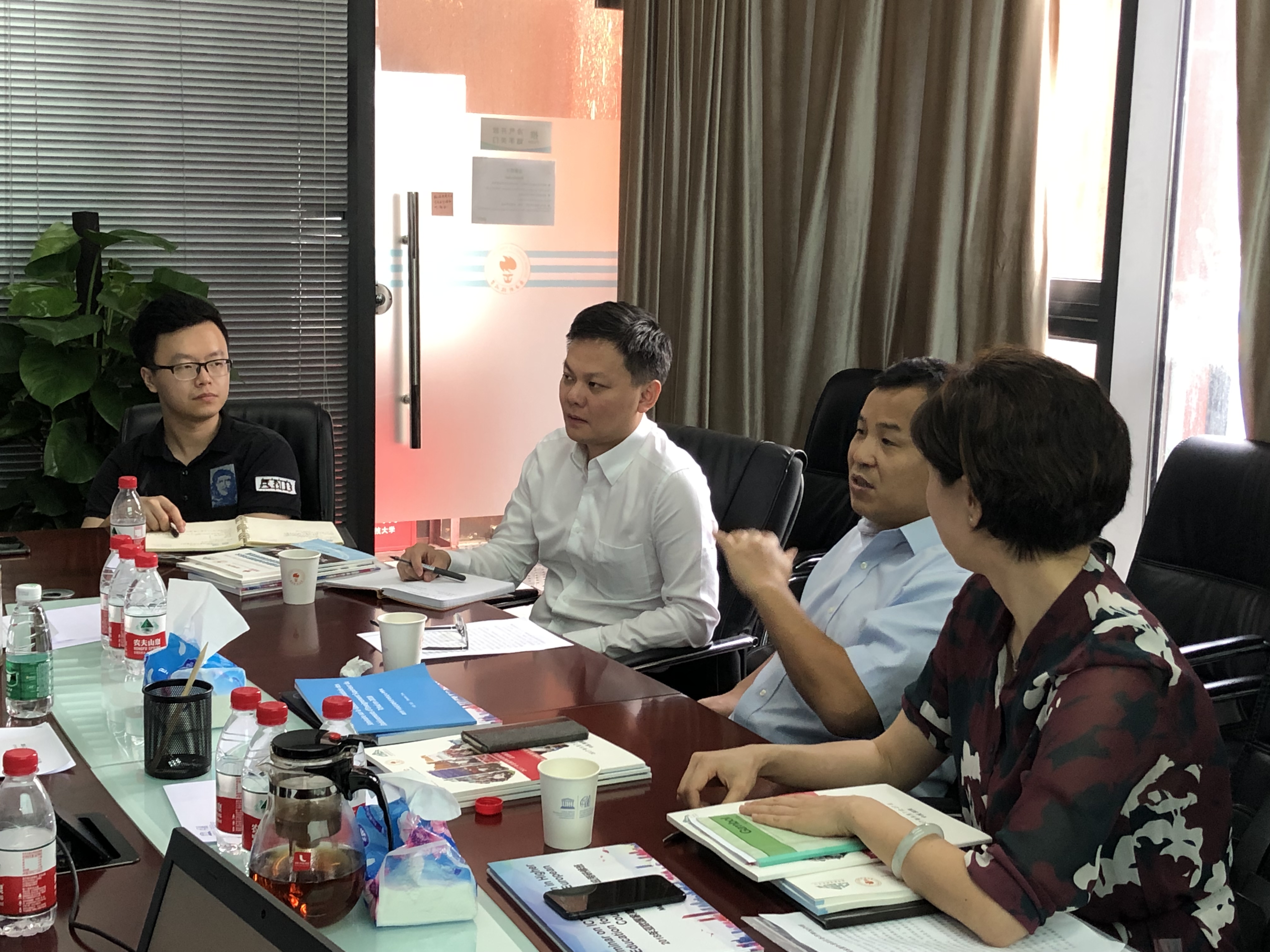 On April 25, 2019, Mr. WANG Youming, Head of the Shenzhen Municipal Commerce Bureau, along with Ms. HE Zhimei, Chief of the Partnership Office, visited ICHEI and Center for Higher Education Research (CHER) at SUSTech. Professor LI Ming, Director of ICHEI, Professor ZHAO Jianhua, Senior Expert of ICHEI, and other staff received the guests.