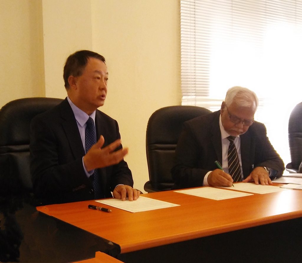 Afterwards, the delegation visited University of the Gambia. Professor Faqir Muhammad Anjum Chaudhry, Vice Chancellor of the university received the delegation with Deputy Vice Chancellors and heads of departments of the university. Both sides had in-depth discussion about talents cultivation, establishment of the smart classroom, ICT capacity building and university cooperation. A MOU of three sides was signed after the meeting.
