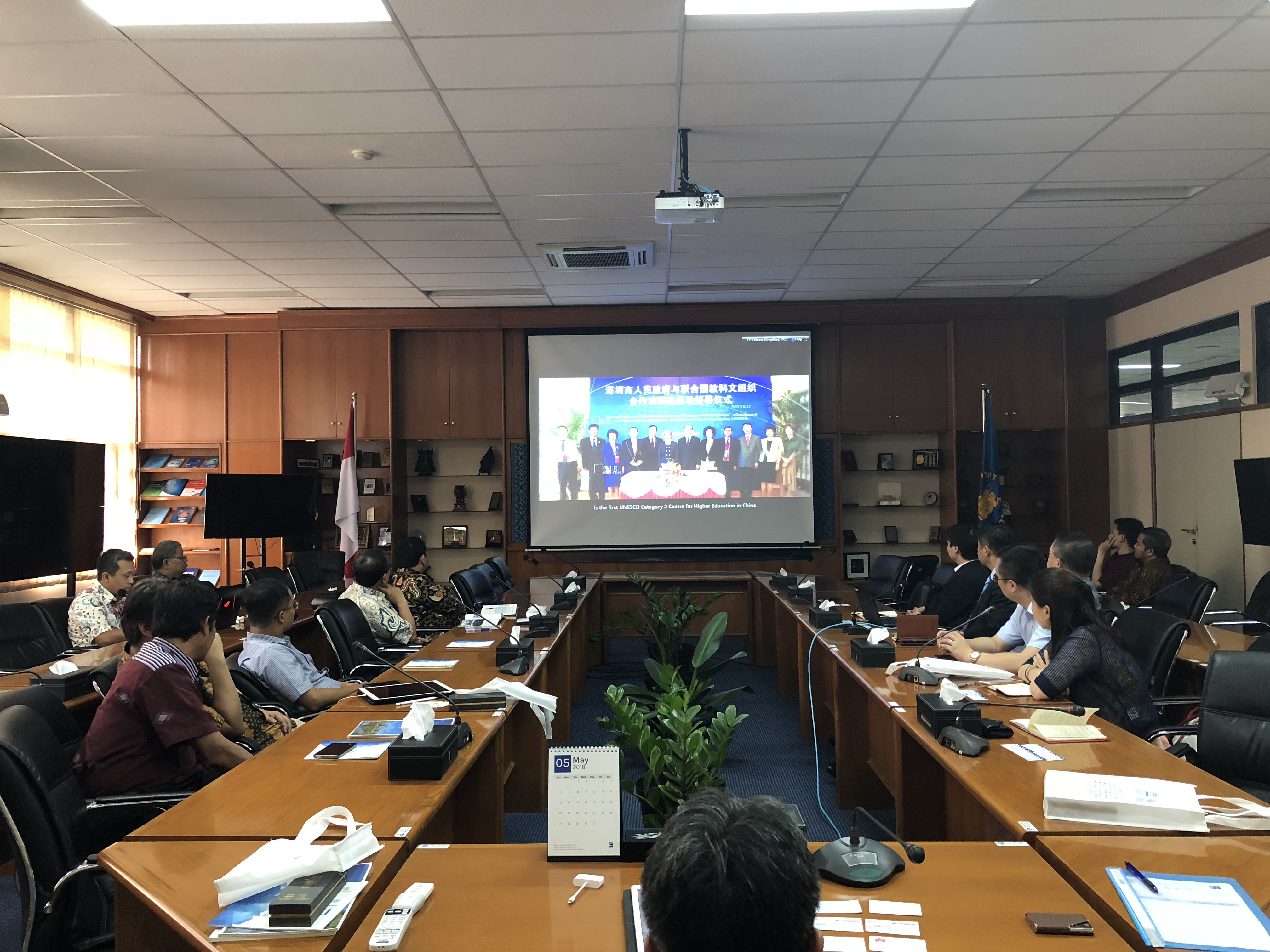 The delegation was greeted by Dr. Jaka Sembiring, the Dean of School of Electrical Engineering and Informatics (STEI), at the main board room. He first gave the delegation an impressive overview of BIT and school's background and development. It was then followed by an introduction of UNESCO-ICHEI and SUSTeh from Prof. LI Ming. Together, with videos and promotion materials, both organizations were able to exchange ideas and visions in depth.