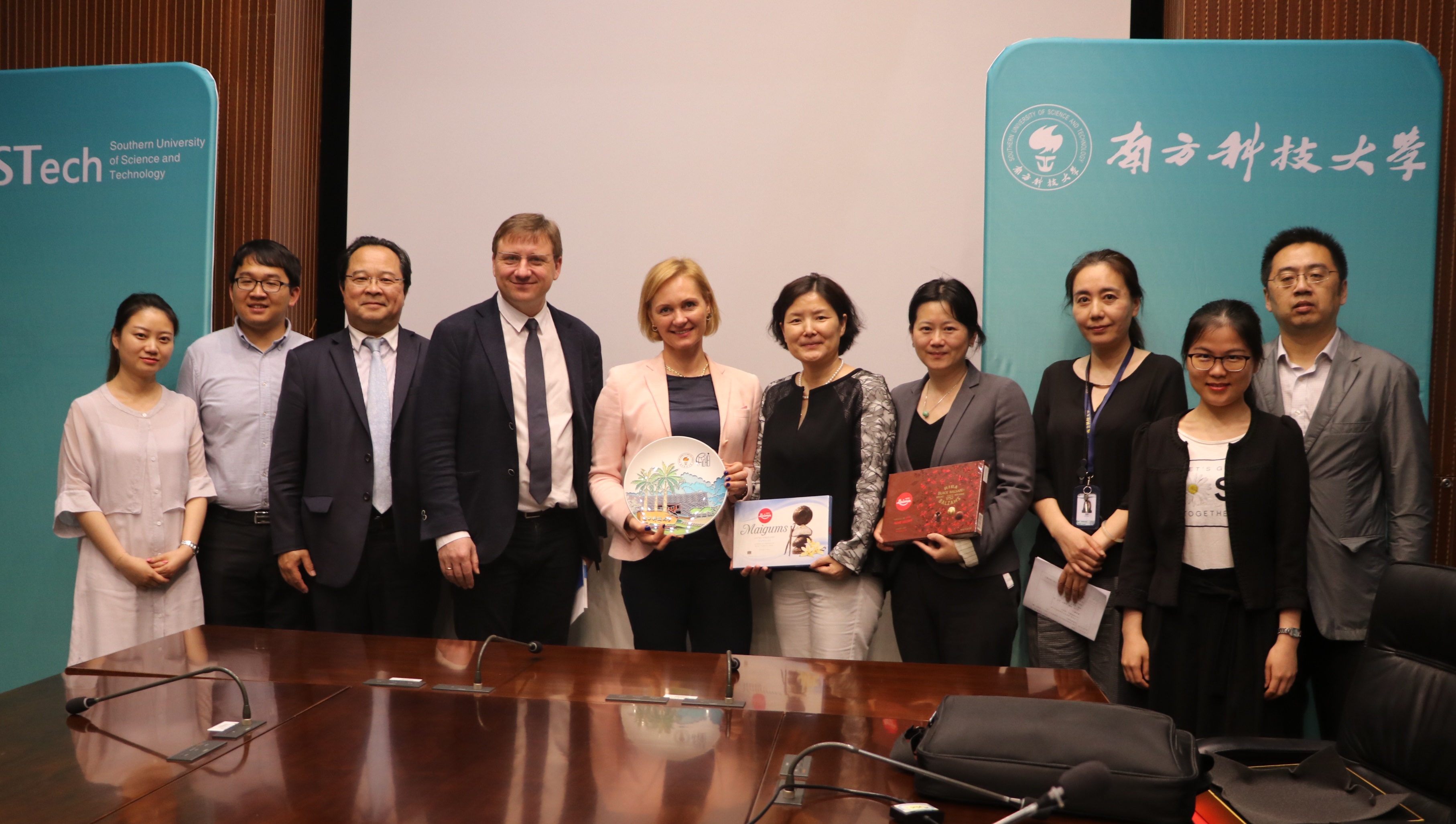 On April 14, 2018, Prof. Björn Kjerfve, Vice Chancellor of American University of Sharjah visited SUSTech and ICHEI in Shenzhen. Prof. LI Ming, Director, and Dr. HAN Wei, Deputy Director of ICHEI held a meeting with the guest.  Prof. LI Ming introduced SUSTech Prof. LI Ming introduced the missions and goals of ICHEI, as well as the ICT in education programmes ICHEI has been conducting in collabora