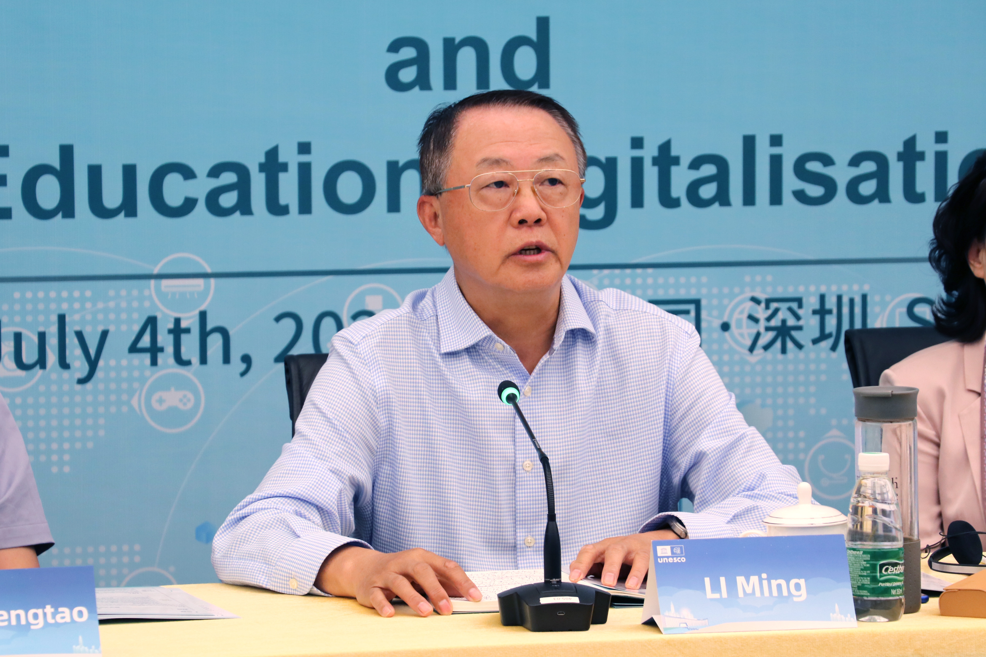 Mr. LIM Cher Ping, Chief Expert of IIOE, UNESCO-ICHEI, Chair Professor of Learning Technologies and Innovation, Education University of Hong Kong, Ms. WEI Fei, Associate Research Fellow, Deputy Dean of School of Open Learning and Education, East China Normal University, Mr. Yang Wenming, Professor, Coordinator of UNESCO Chair on Digitalization in TVET and UNEVOC Centre at Shenzhen Polytechnic, Mr. Wesley Teter, Senior Consultant for Educational Innovation and Skills Development (EISD), UNESCO Multisectoral Regional Office in Bangkok, Mr. Paul Prinsloo, Research Professor in Open Distance Learning, University of South Africa, Mr. Mohamed Elfarnawany, Mr. Mohamed Elfarnawany, Director of Division of Priority Africa Coordination, Priority Africa and External Relations (PAX), as well as over 230 attendees from more than 50 countries, attended the meeting. Mr. QIN Changwei, Secretary-General of the Chinese National Commission for UNESCO delivered a speech online. Mr. LI Ming, Director of UNESCO-ICHEI, Chair Professor of Southern University of Science and Technology made a summary of the meeting.