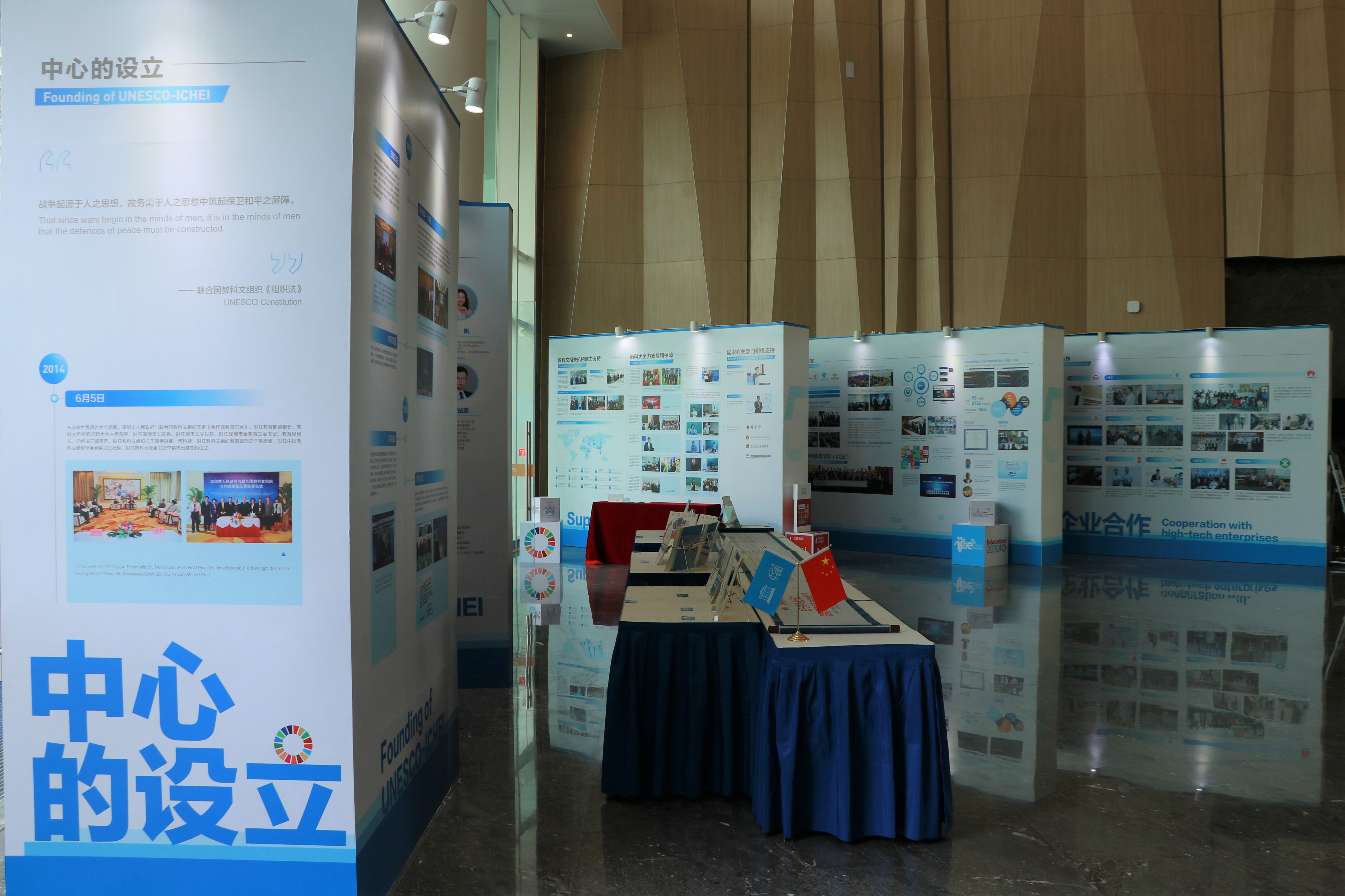 Our Journey with SUSTech—UNESCO-ICHEI 2015-2020 successfully held in the lobby of SUSTech Convention Center(December 20-31, 2020) After the ceremony, guests visited the exhibition, "Our Journey with SUSTech—UNESCO-ICHEI 2015-2020". Relying on the academic excellence of SUSTech, UNESCO-ICHEI was co-founded by UNESCO and Shenzhen Municipal People's Government and serves as the only UNESCO Category II center dedicated to higher education. UNESCO-ICHEI remains committed to SDG4 and the Education 2030 Framework for Action, promotes higher education digitalization through ICT application and conducts exchanges and cooperation in higher education with Asian and African countries along the marine time silk road so as to achieve inclusive and equitable quality higher education. What's more, UNESCO-ICHEI has facilitated SUSTech in enrolling international students, increasing visibility at international conferences and establishing a global network of partner HEIs.
