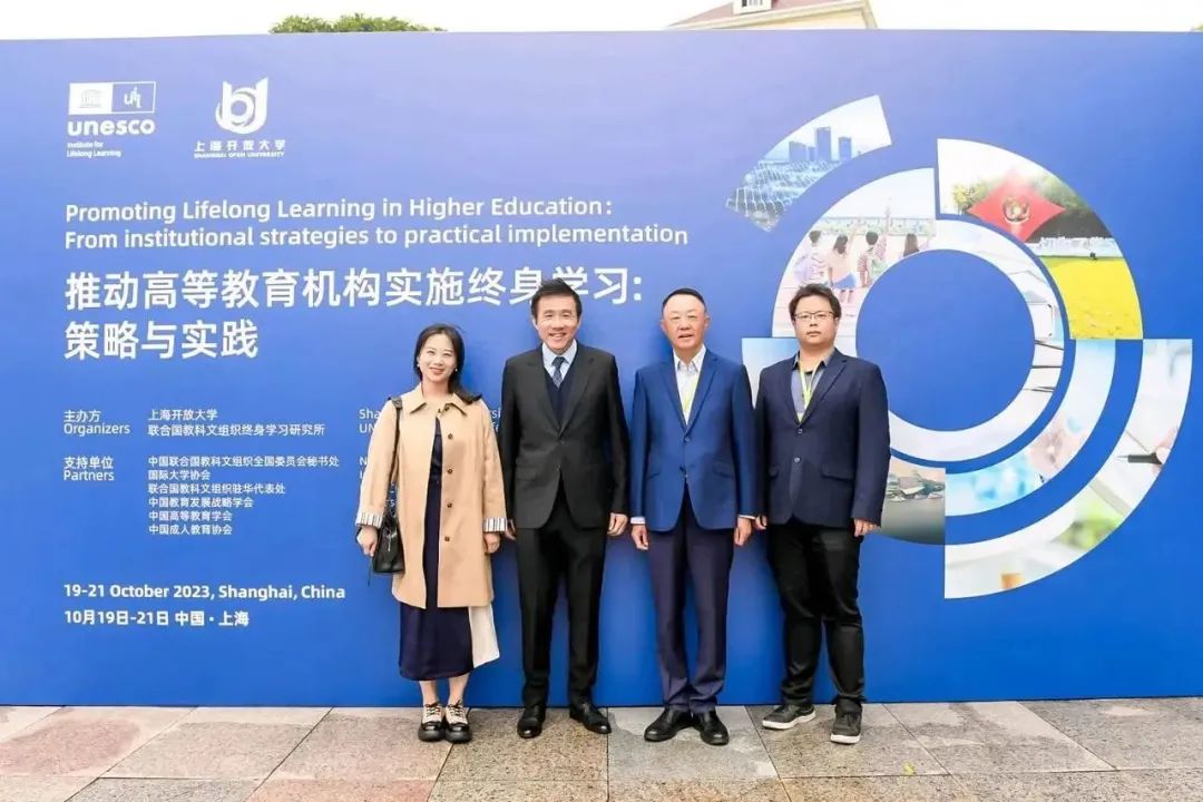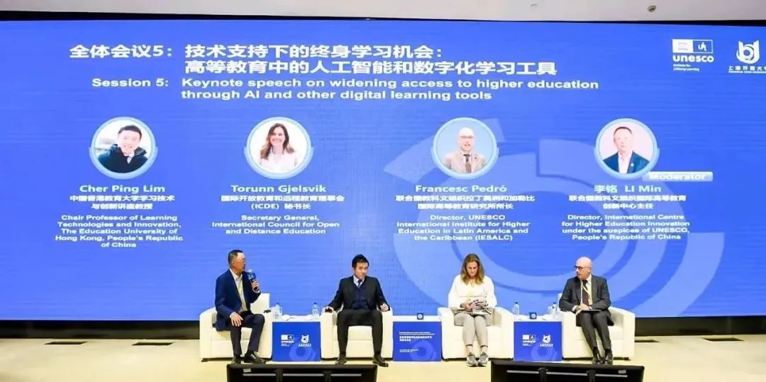 On October 19-20, 2023, the "Promoting Lifelong Learning in Higher Education: From Institutional Strategies to Practical Implementation" jointly organized by the UNESCO Institute for Lifelong Learning and Shanghai Open University was successfully held in Shanghai. Professor Li Ming, Director of the UNESCO Innovation Center for Higher Education Institution (UNESCO-ICHEI), was invited to attend the conference and presided over session 5 "Lifelong Learning Opportunities Supported by Technology: Artificial Intelligence and Digital Learning Tools in Higher Education". Prof. Cher Ping Lim, Chief Expert of the UNESCO-ICHEI International Institute of Online Education (IIOE) and Chair Professor of Learning Technologies and Innovation at the Education University of Hong Kong, China (EdUHK), shared the keynote speech entitled "Inclusive and Equitable Quality Higher Education Enabled by Digital Technologies: Building the Capacity of Teachers and Leaders", and discussed with Ms. Torunn Gjelsvik, Secretary General of the International Council for Open and Distance Education (ICDE) and Mr. Francesc Pedro, Director of the UNESCO International Institute for Higher Education in Latin America and the Caribbean (IESALC).